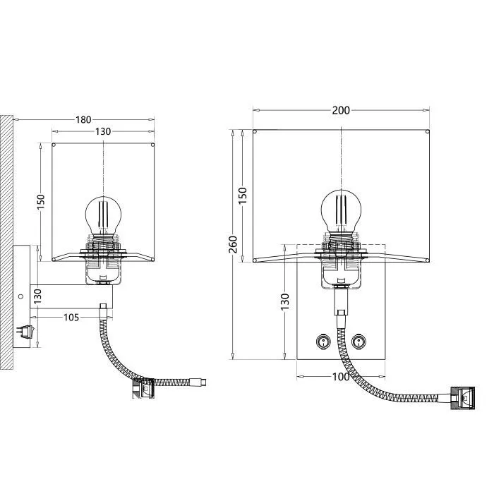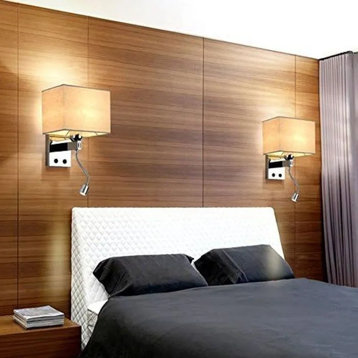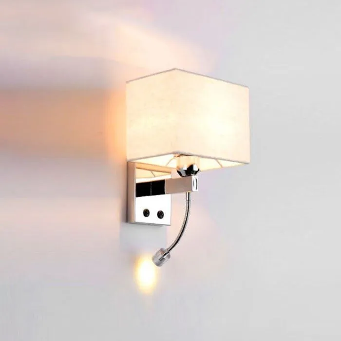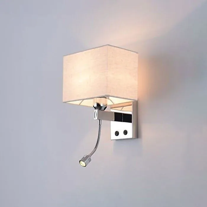 اضاءة جدارية شيد مربع بيج فريم كروم مع كشاف إضاءة قراءة ومفتاحين