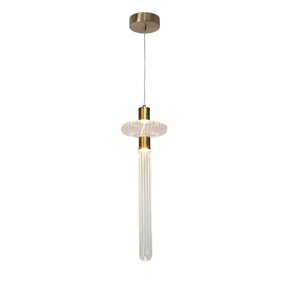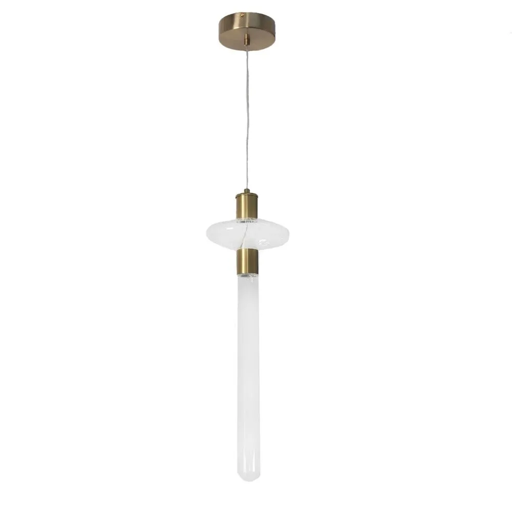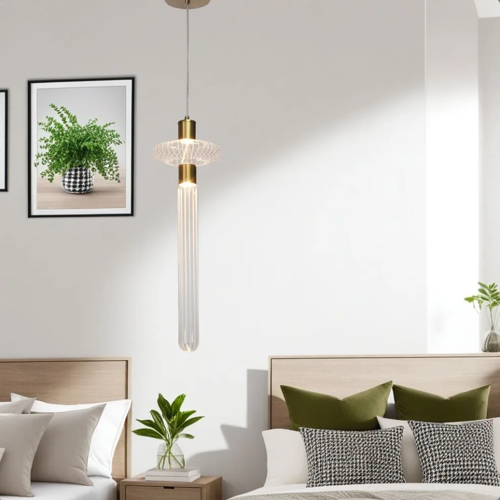 إنارة معلقة مودرن بتصميم نحاسي وزجاجي أنيق، تعمل بقدرة 7 واط وتوفر إضاءة دافئة ومريحة. مثالية للاستخدام في غرف المعيشة والنوم، تضيف لمسة فاخرة إلى ديكور المساحات الداخلية.