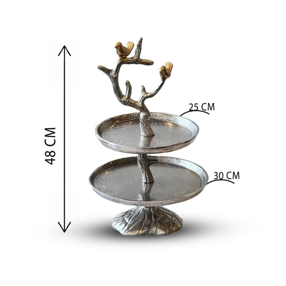 | مقاس حامل الكيك | الارتفاع 48 سم * قطر الدور الكبير 30 سم * قطر الدور الصغير 25 سم |
