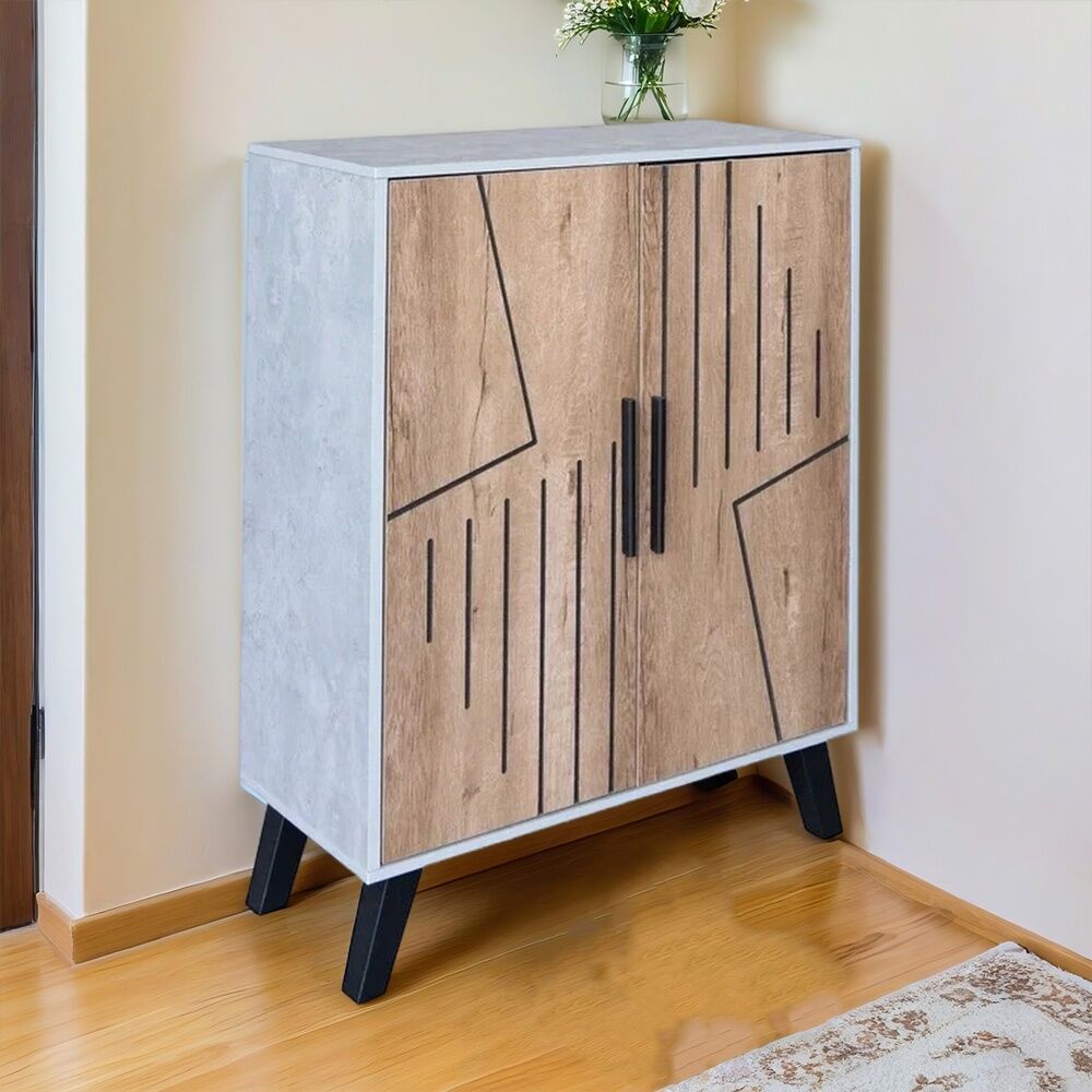 خزانة احذية بابين دالس - رمادي وبيج