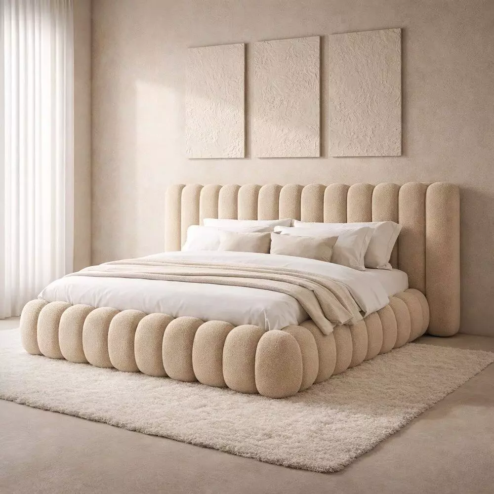 سرير كينغ أنيق بتصميم عصري مميز يجمع بين الراحة والطابع الجذاب، مثالي لغرف النوم الواسعة ويمنحها إحساسًا بالدفء والنعومة. يتميز بتنجيد كامل من قماش بوليستر بملمس مريح ومظهر متوازن، مع هيكل من الخشب الصلب يوفر قوة وثباتًا عاليين للاستخدام طويل الأمد. لونه البيج الفاتح يضفي لمسة دافئة وطبيعية، ويسهل تنسيقه مع مختلف أنماط الديكور ليكون خيارًا عمليًا وأنيقًا لغرفة النوم.