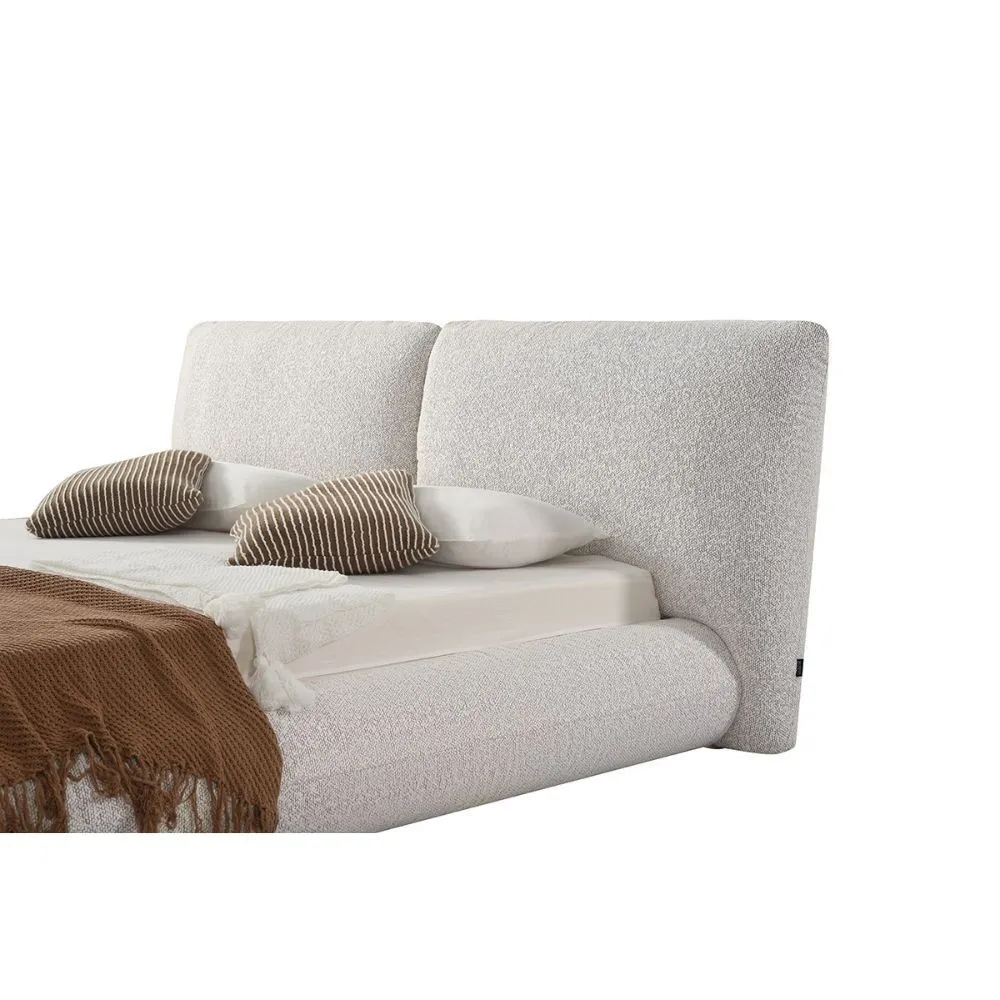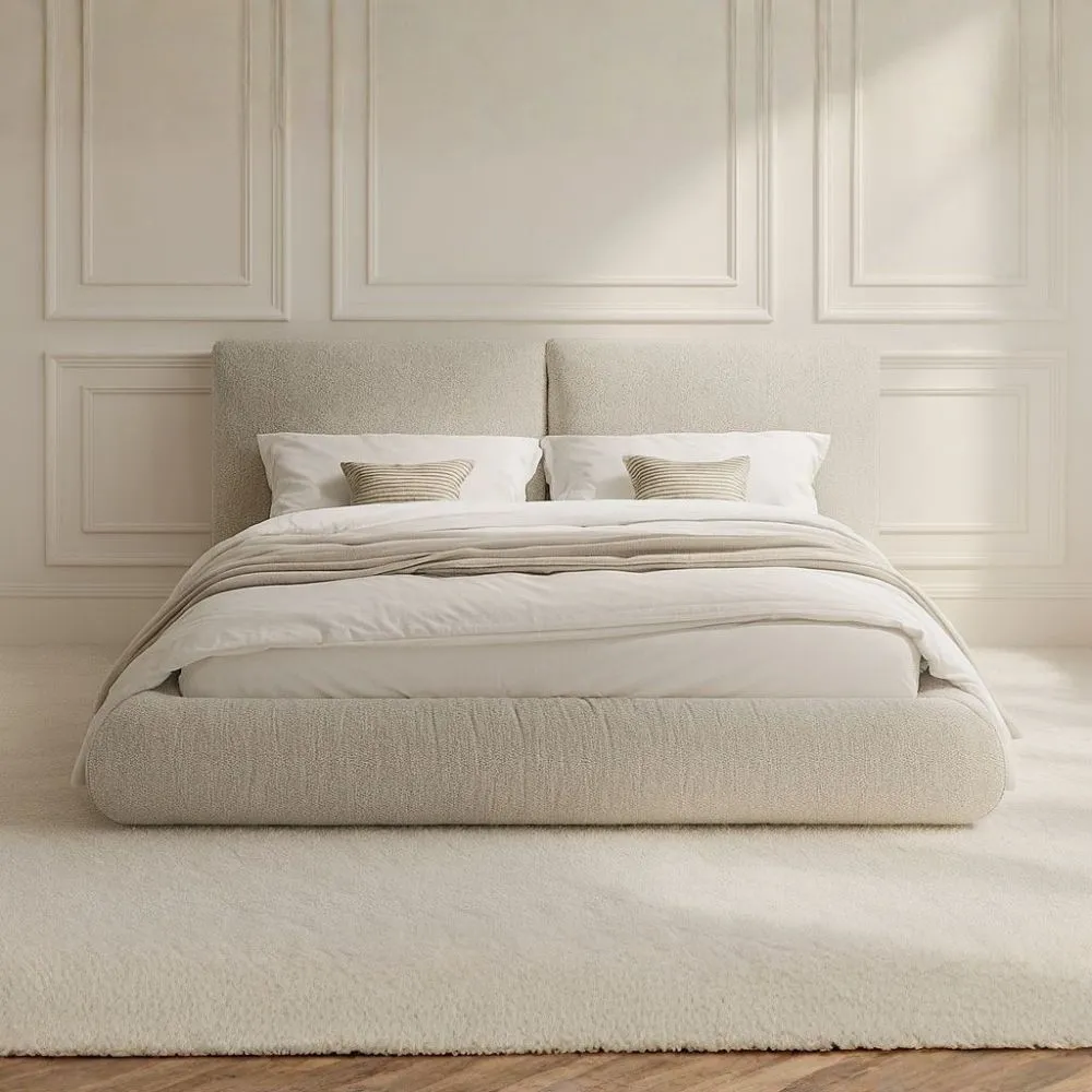 سرير كينغ أنيق بتصميم عصري ناعم يجمع بين الراحة والبساطة، مثالي لغرف النوم الواسعة ويمنحها إحساسًا بالهدوء والانسجام. يتميز بتنجيد كامل من قماش بوليستر بملمس مريح ومظهر أنيق، مع هيكل من الخشب الصلب يوفر قوة وثباتًا عاليين للاستخدام طويل الأمد. لونه البيج الفاتح يضفي لمسة مشرقة ودافئة، ويسهل تنسيقه مع مختلف أنماط الديكور ليكون خيارًا عمليًا وأنيقًا لغرفة النوم.
