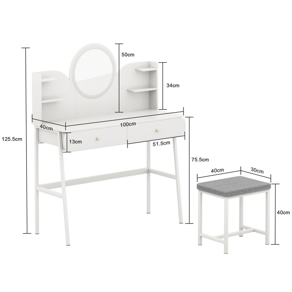 لا تتضمن هذه الحزمة طاولة الزينة فحسب، بل تتضمن أيضًا كرسي زينة مريحًا يكمل تصميم الطاولة بشكل لا تشوبه شائبة. اجلس براحة أثناء استعدادك لمواعيدك النهارية أو المسائية.