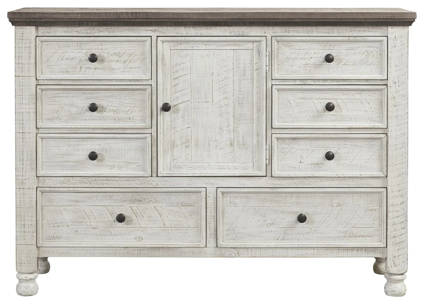 طاولة تزيين كلاسيك دريسر بتصميمها الريفي الكلاسيكي الأنيق المستوحى من نمط حرفية المزارع الأمريكية, الطاولة مصنوعة من أجود أنواع الخشب المتين بلون أبيض خشبي عتيق وتتضمن عدة أدراج تساعدك في توضيب اكسسواراتك ومجوهراتك , المكياج ومستخضرات العناية الشخصية كما أن السعة التخزينية للطاولة تتيح إمكانية استخدامها في توضيب الملابس.