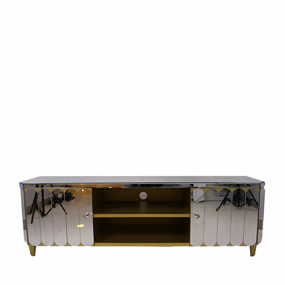سطح زجاجي عاكس : سطح الطاولة مصنوع من زجاج عالي الجودة يمنحها لمسة عصرية ويعكس الإضاءة بطريقة جذابة، ما يضيف لمسة من الفخامة إلى الغرفة.