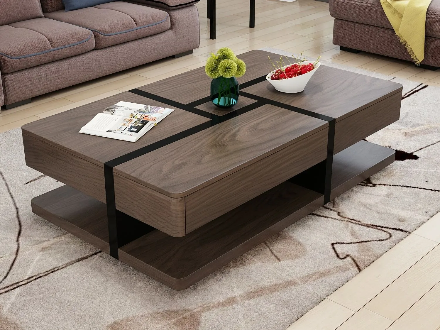طاولة قهوة بمساحة تخزين سايد درورز- بني