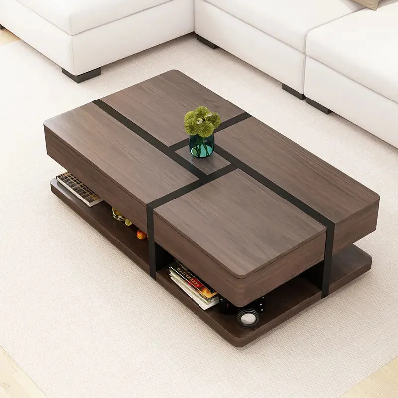 طاولة قهوة خشبية بمساحة تخزين مخفية