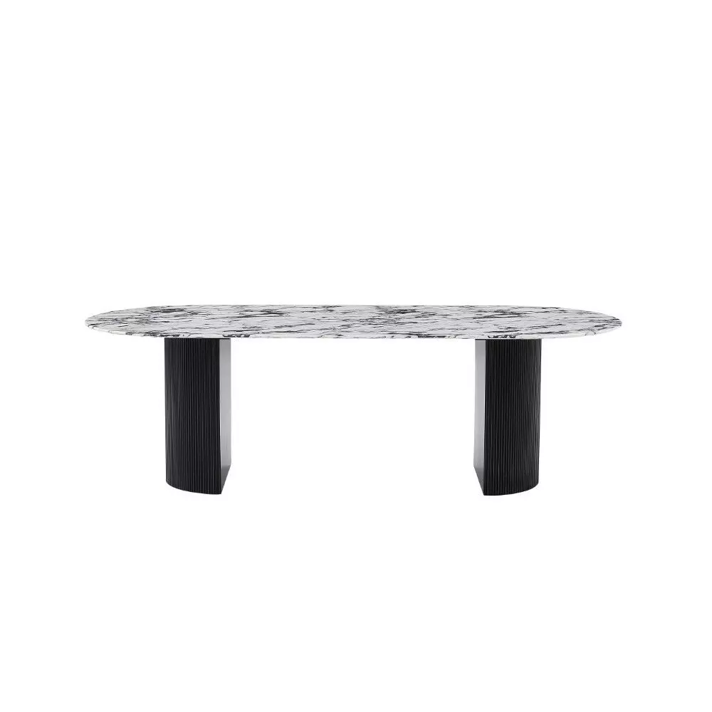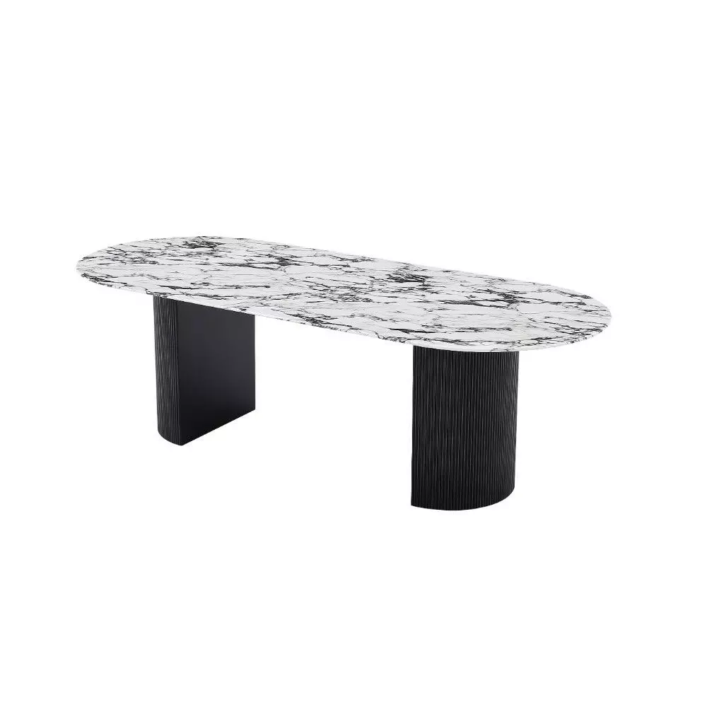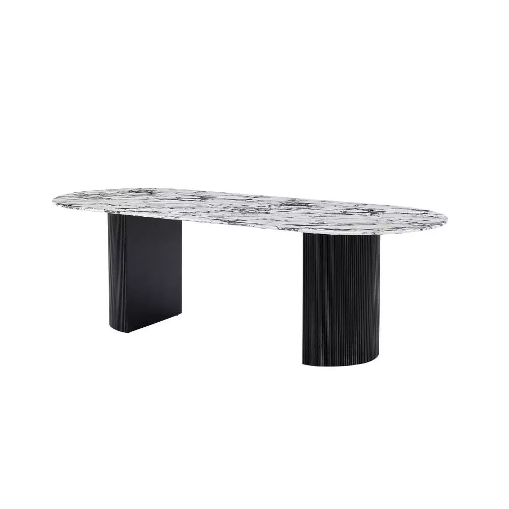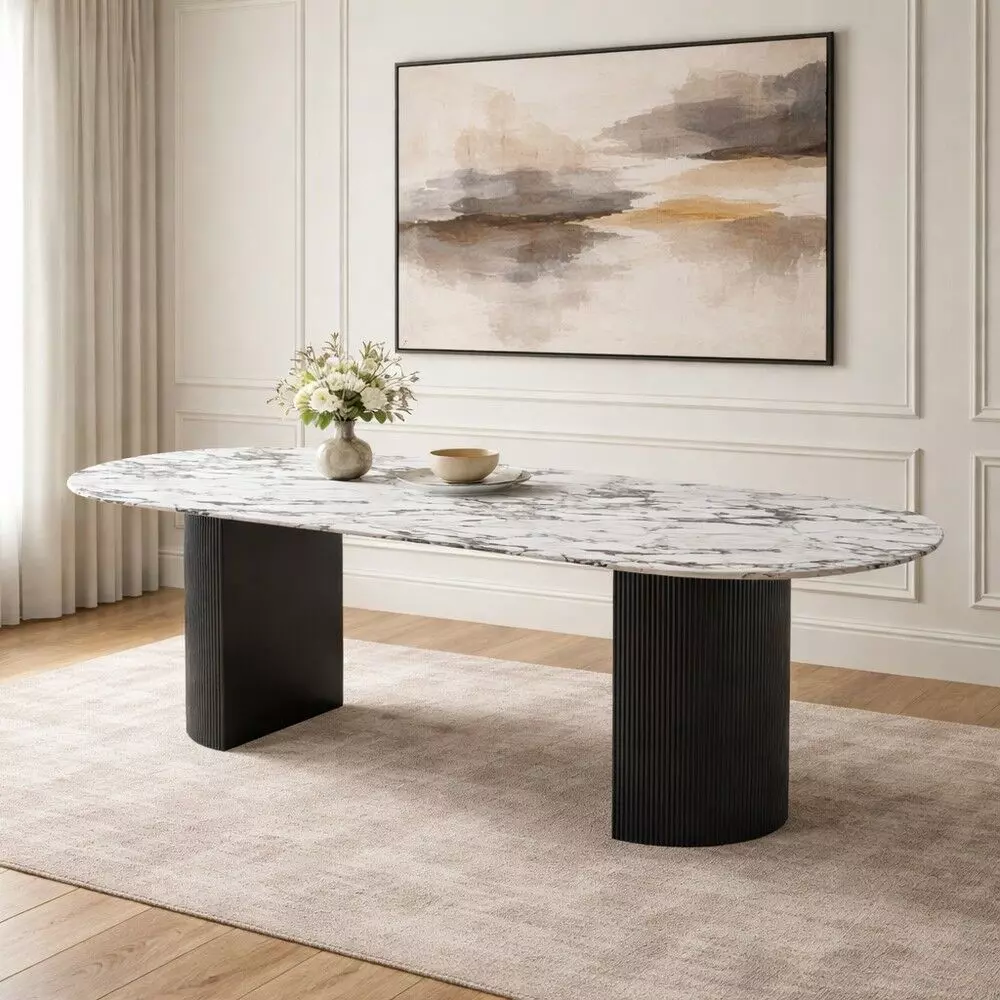 طاولة طعام بتصميم عصري بخطوط ناعمة وأنيقة، مع قاعدة ثابتة تضمن الاستقرار والاستخدام المريح، وتبرز جمال التباين بين اللون الأسود والتشطيب الرخامي متعدد الألوان.اختر فلورا من بيتونيا لتجربة تجمع بين الجرأة العصرية والجودة العالية، ولا تتردد واطلبها الآن من بيتونيا لتكون إضافة فاخرة ومميزة لغرفة الطعام الخاصة بك.