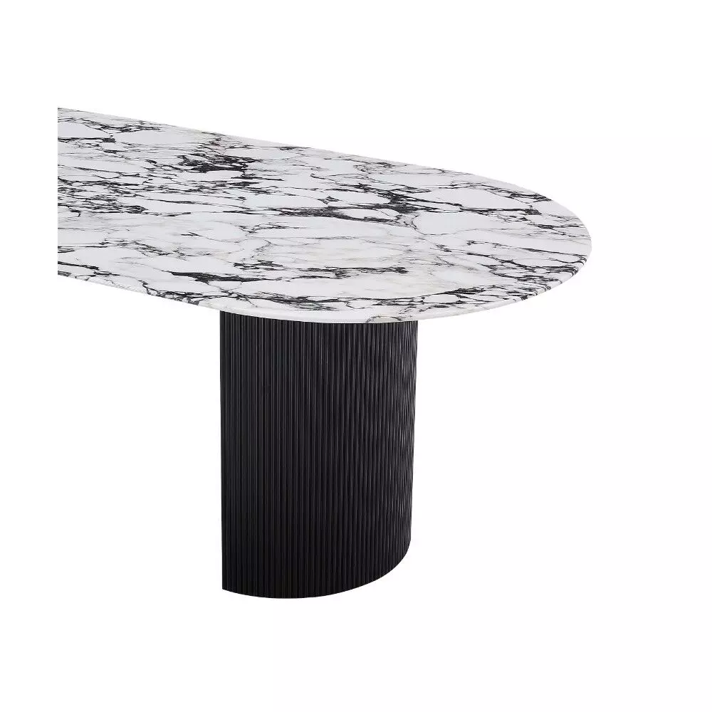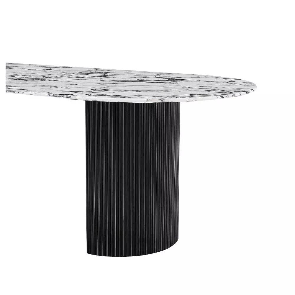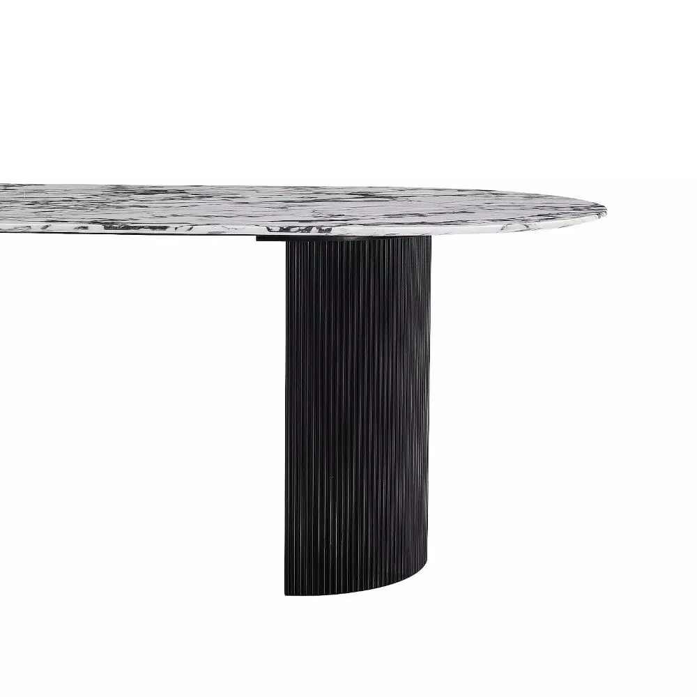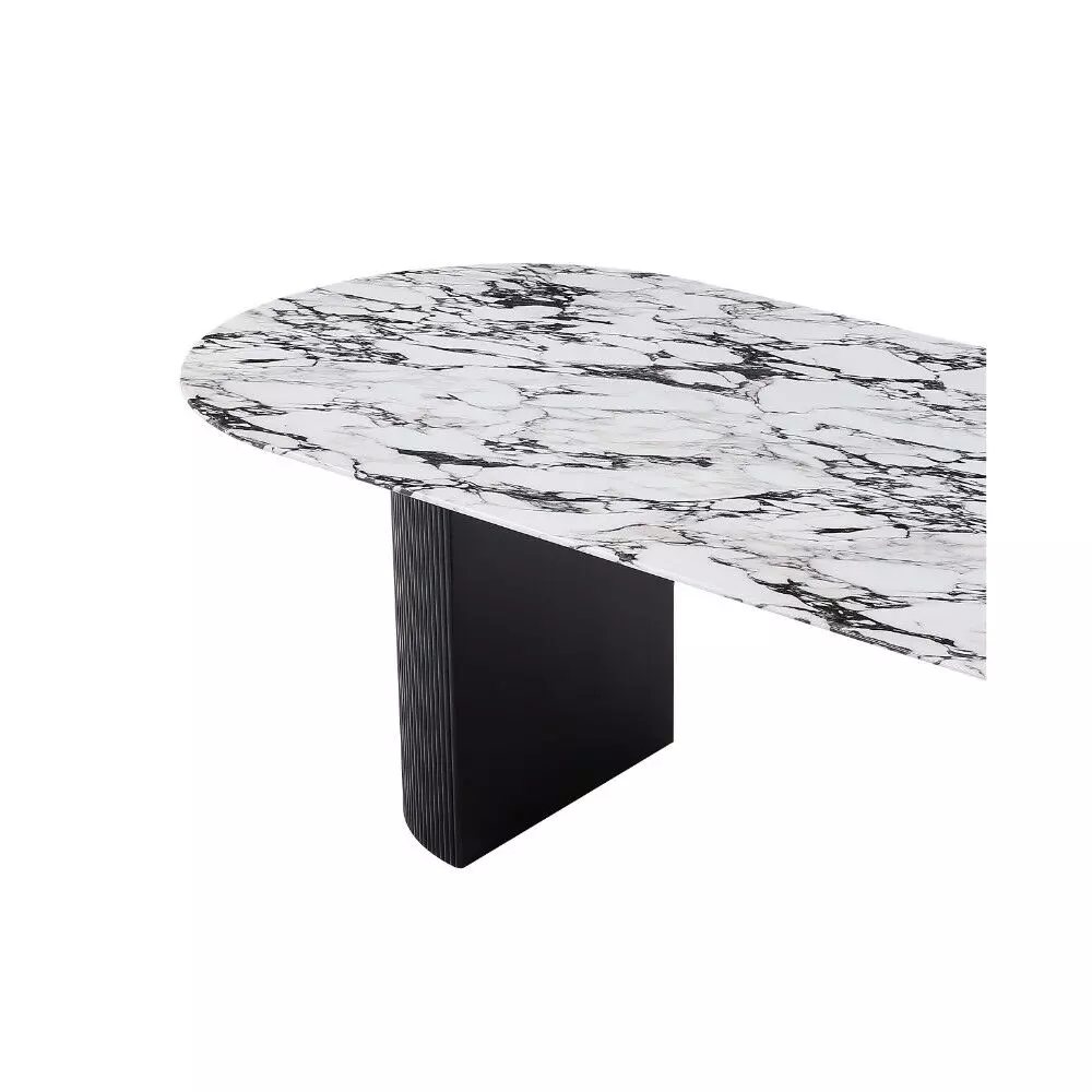 طاولة طعام بتصميم عصري بخطوط ناعمة وأنيقة، مع قاعدة ثابتة تضمن الاستقرار والاستخدام المريح، وتبرز جمال التباين بين اللون الأسود والتشطيب الرخامي متعدد الألوان.اختر فلورا من بيتونيا لتجربة تجمع بين الجرأة العصرية والجودة العالية، ولا تتردد واطلبها الآن من بيتونيا لتكون إضافة فاخرة ومميزة لغرفة الطعام الخاصة بك.