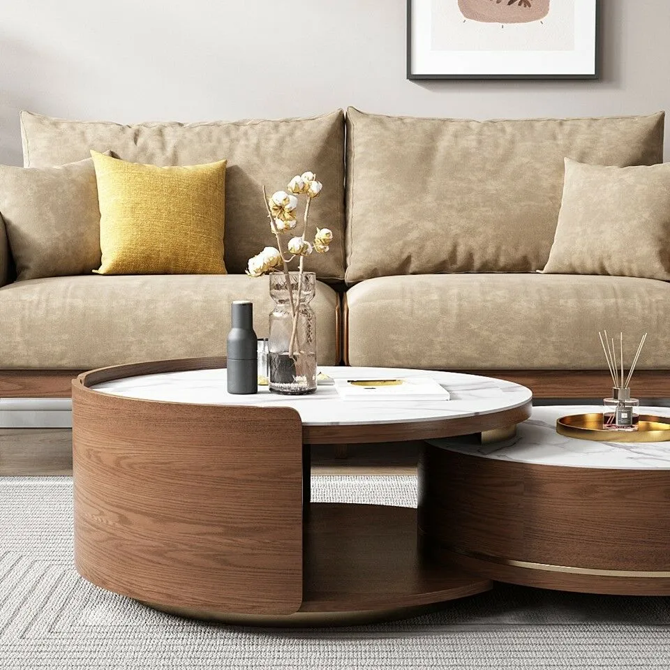 • تصميم متداخل: طاولتين دائريتين بحجمين مختلفين لتوفير المساحة.