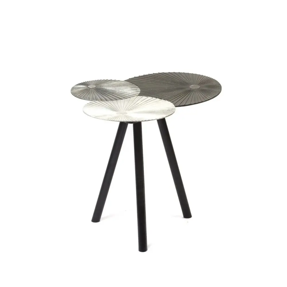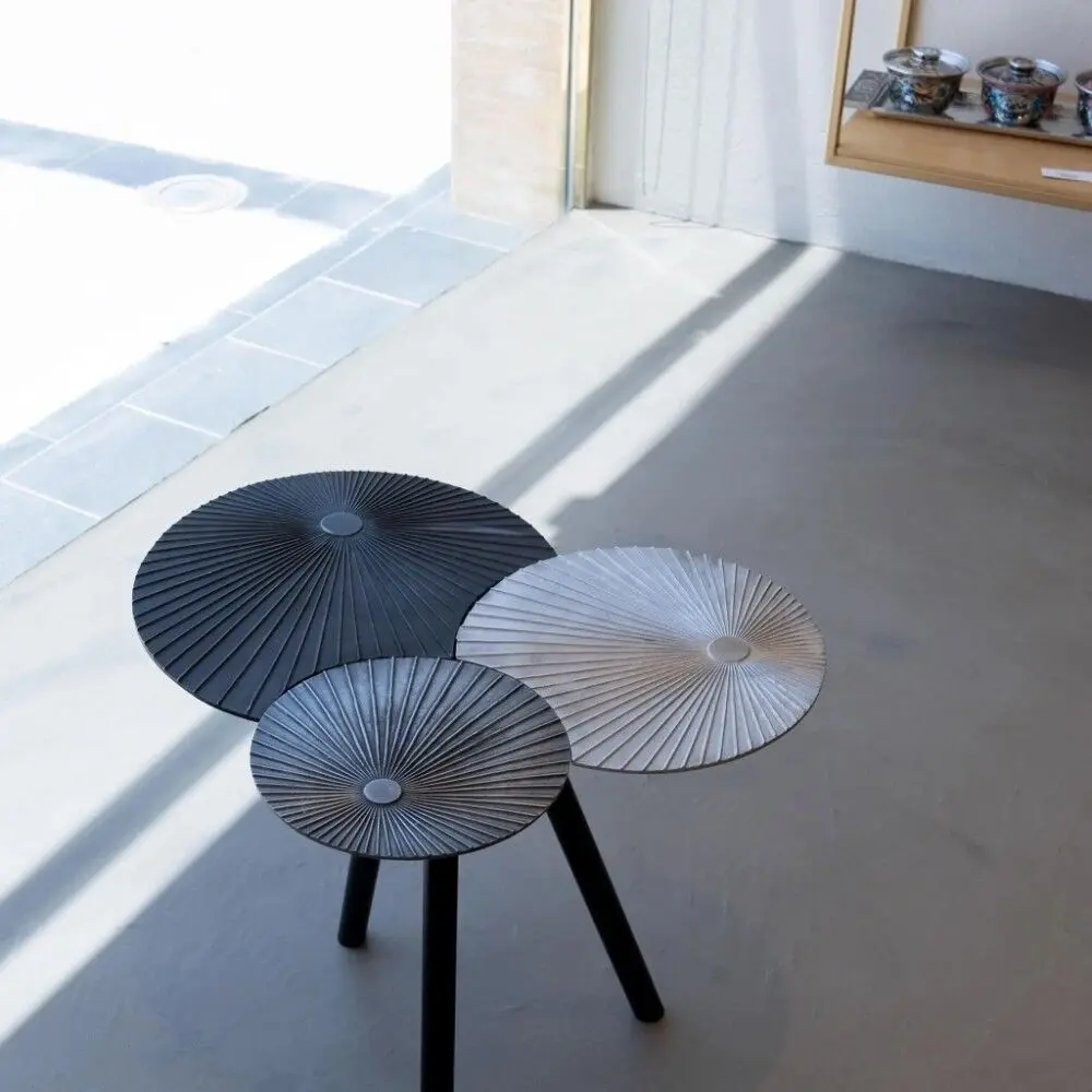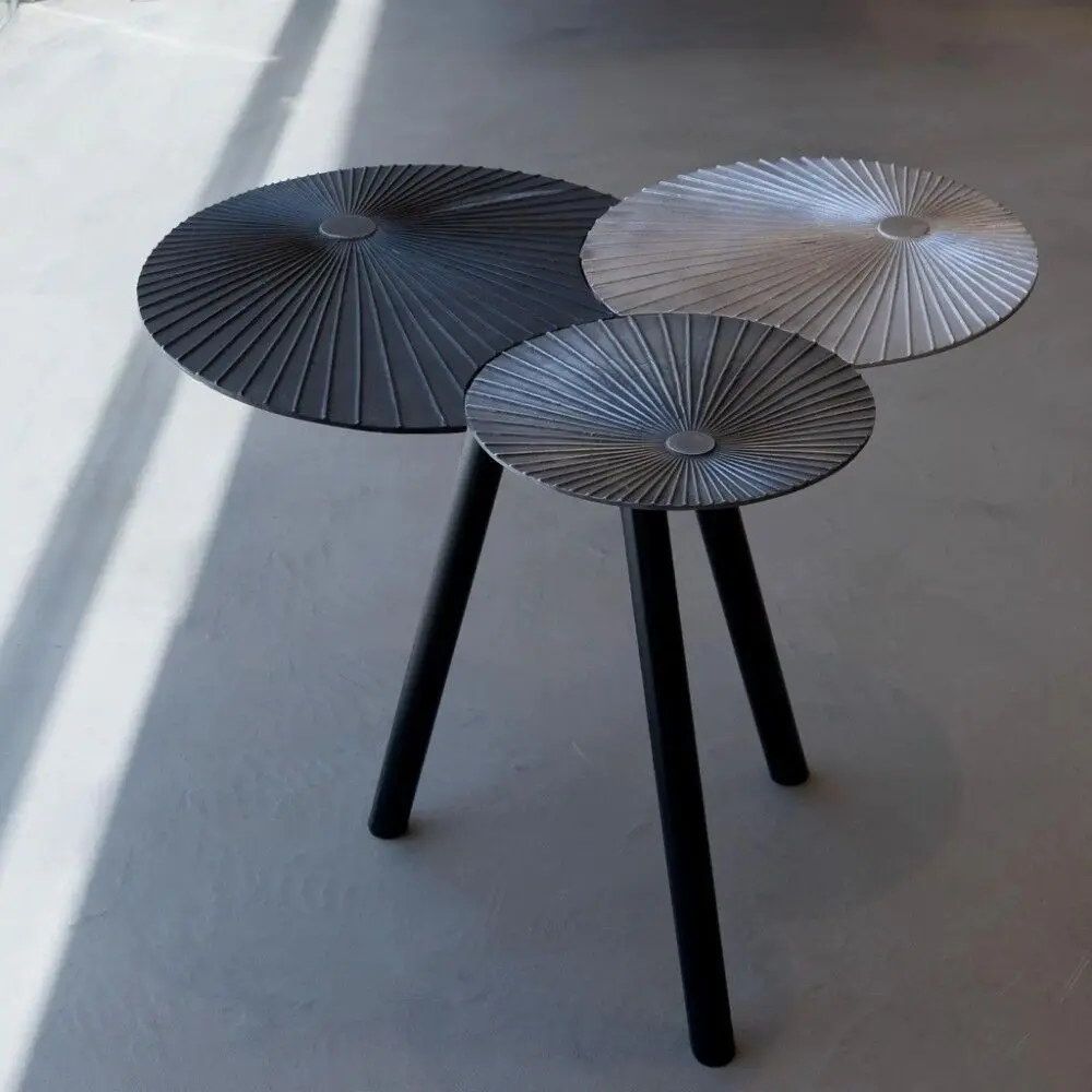 طاولة قهوة بتصميم غير مركزي مع غلاف سلكي طاولة قهوة أنيقة بتصميم غير مركزي يجمع بين الطابع العصري واللمسة الفنية المميزة. مصنوعة من الألومنيوم المصبوب مع تشطيب أسود عتيق مطفي، وتتميز بثلاثة أرجل دائرية بأحجام متفاوتة مع تفاصيل أخاديد خطية تضفي بعدًا بصريًا أنيقًا على السطح. تم تثبيت الأرجل الثلاثية المصنوعة من الفولاذ الأسود بإحكام باستخدام براغي متينة، مما يوفر ثباتًا عاليًا ويعزز من متانة التصميم. قطعة مثالية لإضافة لمسة عصرية جريئة إلى غرفة المعيشة وتشكّل عنصرًا لافتًا في المساحات العصرية.