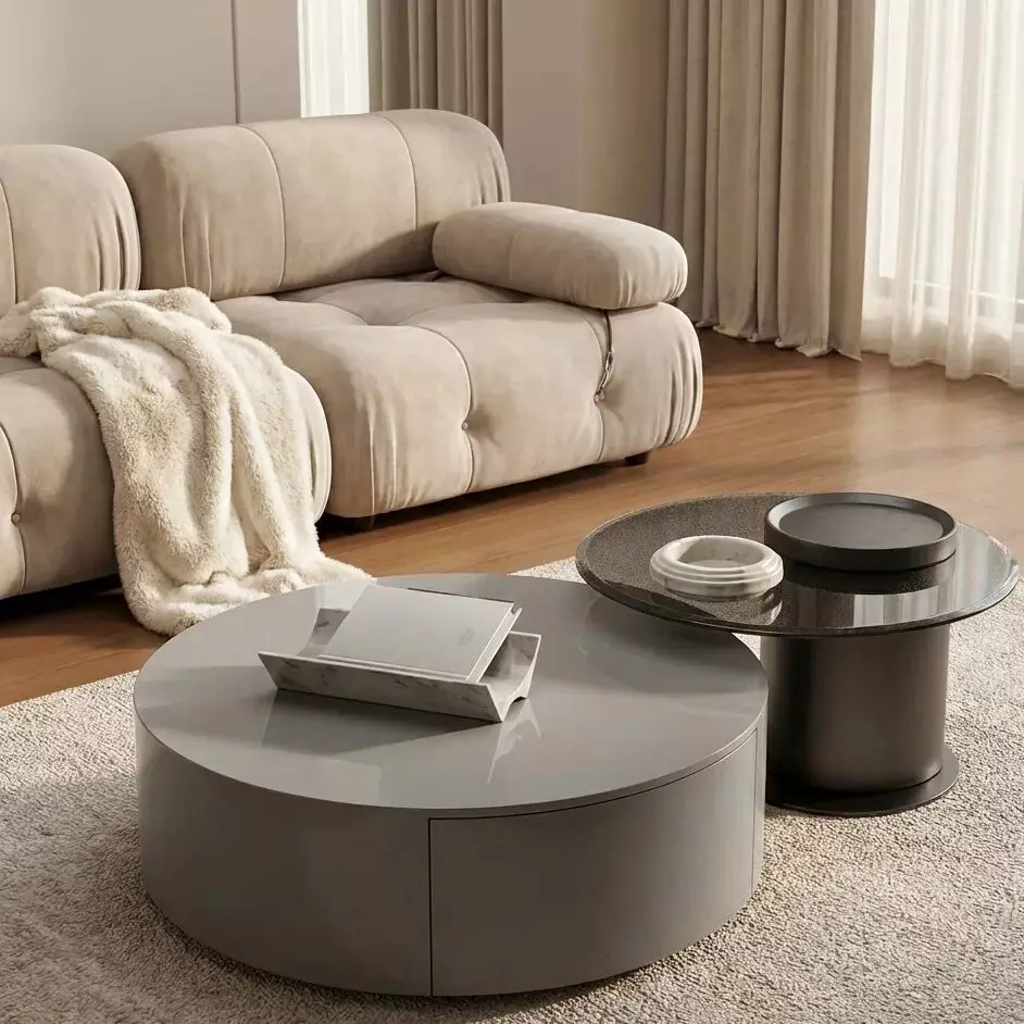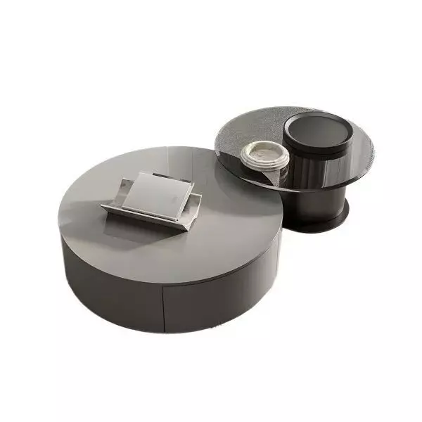 طاولة قهوة مودرن اليجانس - رمادي و أسود تتميز بتصميمها الدائري الأنيق الذي يضيف لمسة فريدة إلى أي مساحة. الشكل الدائري يعزز من سهولة التنقل حول الطاولة ويوفر مساحة واسعة لوضع الأكواب والكتب والمجلات، مما يجعلها مثالية للاستخدام اليومي.
