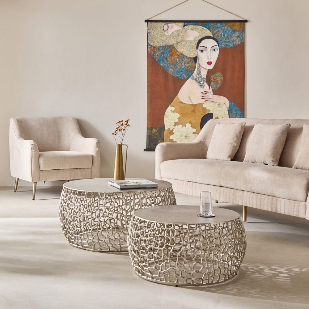| أبعاد المنتج | طاولة 1 الوزن: 17.7 كجم x العمق: 90 سم x الارتفاع: 41 سم x العرض: 90 سم طاولة 2 الوزن: 11.8 كجم x العمق: 70 سم x الارتفاع: 34 سم x العرض: 70 سم |