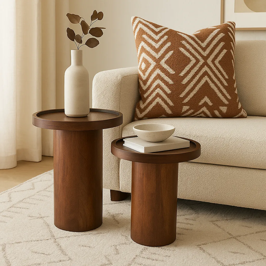أنت تراجع:طقم طاولتين جانبية بيت - بني