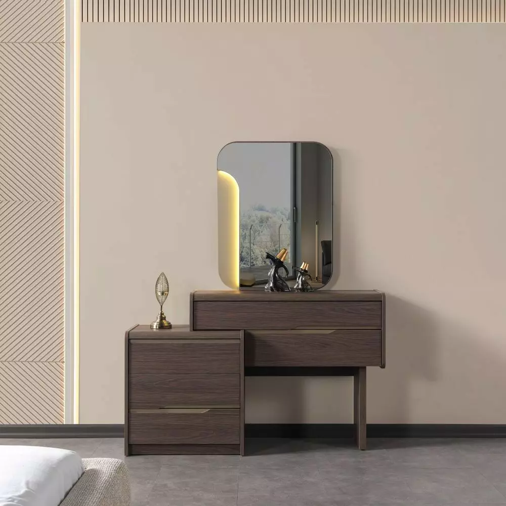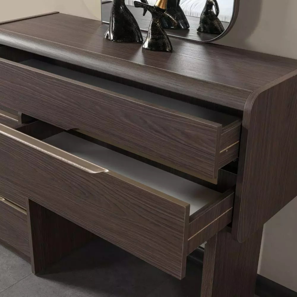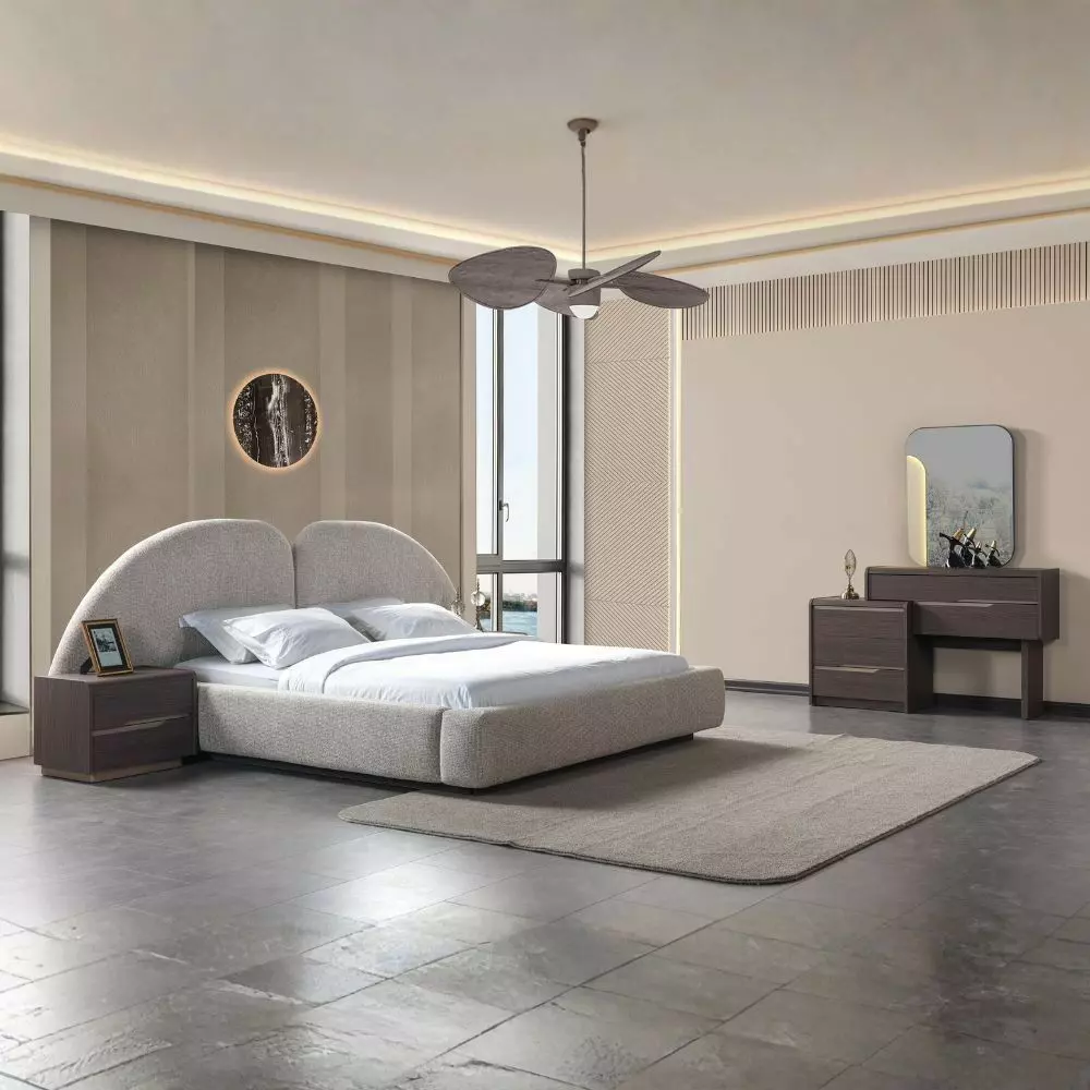 | يتضمن الطقم | 1 سرير كينغ - 1 تسريحة - 1 مرآة - 2 كومودينو |