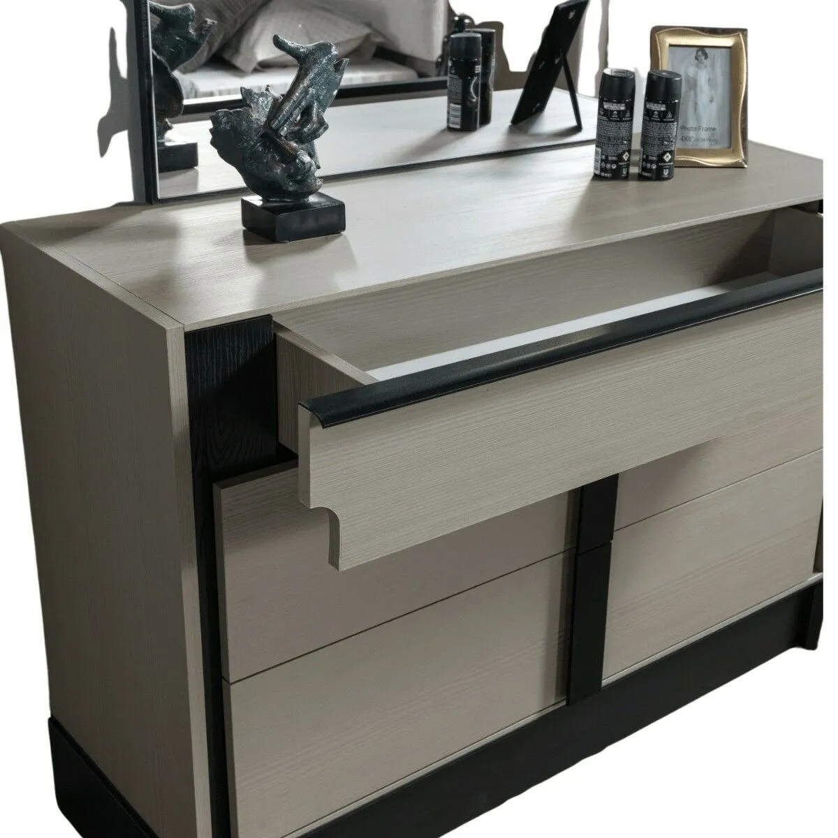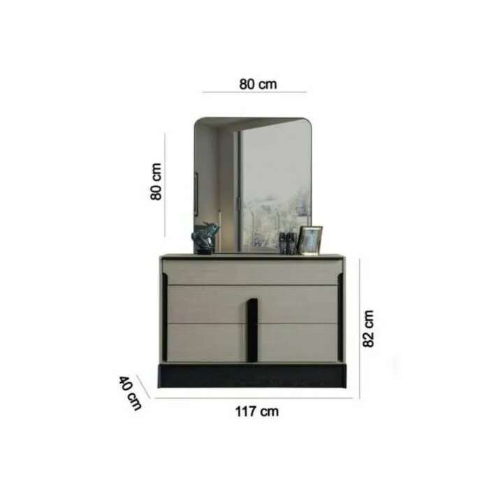 يمثل الكومودينو وطاولة التزيين من خشب MDF توازنًا مثاليًا بين الجمال والوظائف. تمتاز الكومودينو بتصميمها الأنيق والوظيفي، حيث توفر مساحة تخزين إضافية، بينما تضفي طاولة التزيين لمسة من الجمال والأناقة لأي غرفة بتصميمها الراقي والعملي. تضيف المرآة لمسة نهائية من الأناقة مما يجعلها خيارًا مثاليًا للمكان المثالي لتجهيز الذات وإضفاء لمسة أخيرة من الفخامة على الديكور الداخلي للغرفة.