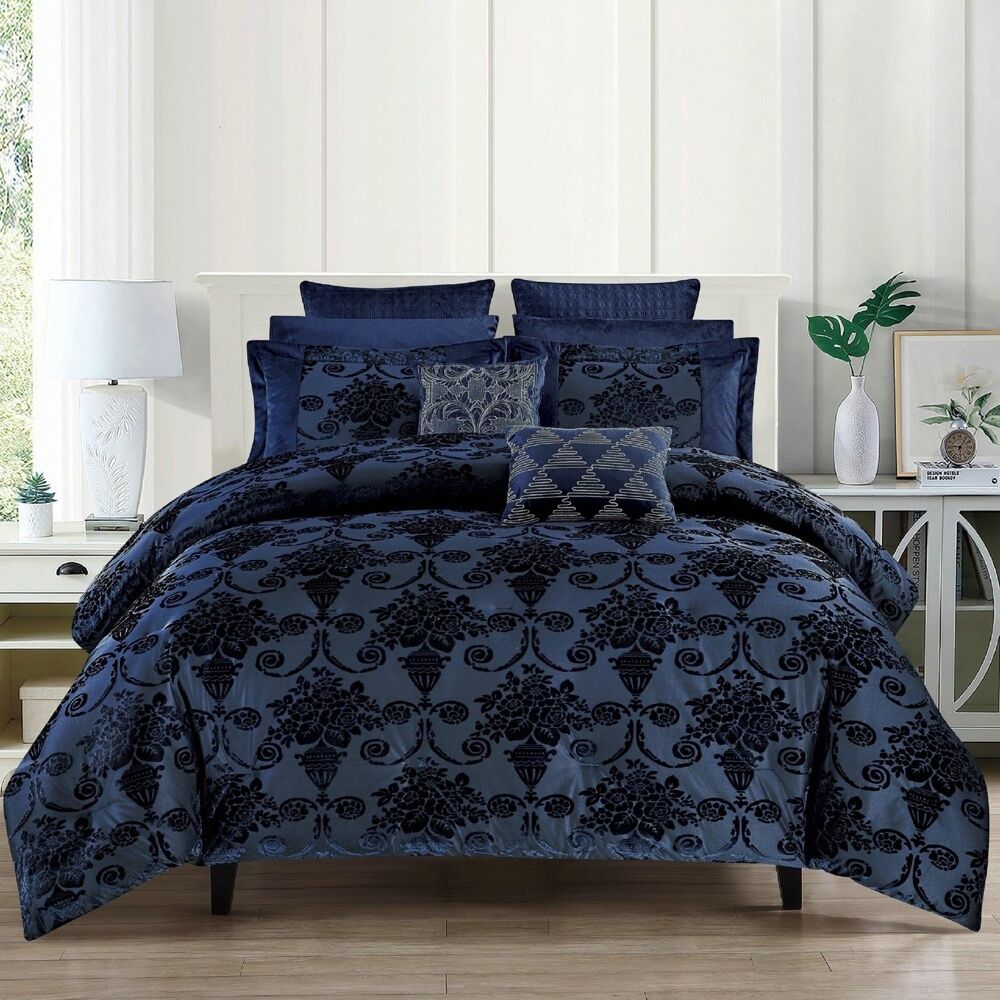 طقم لحاف كوين شتوى هدي - 4 قطع - ازرق