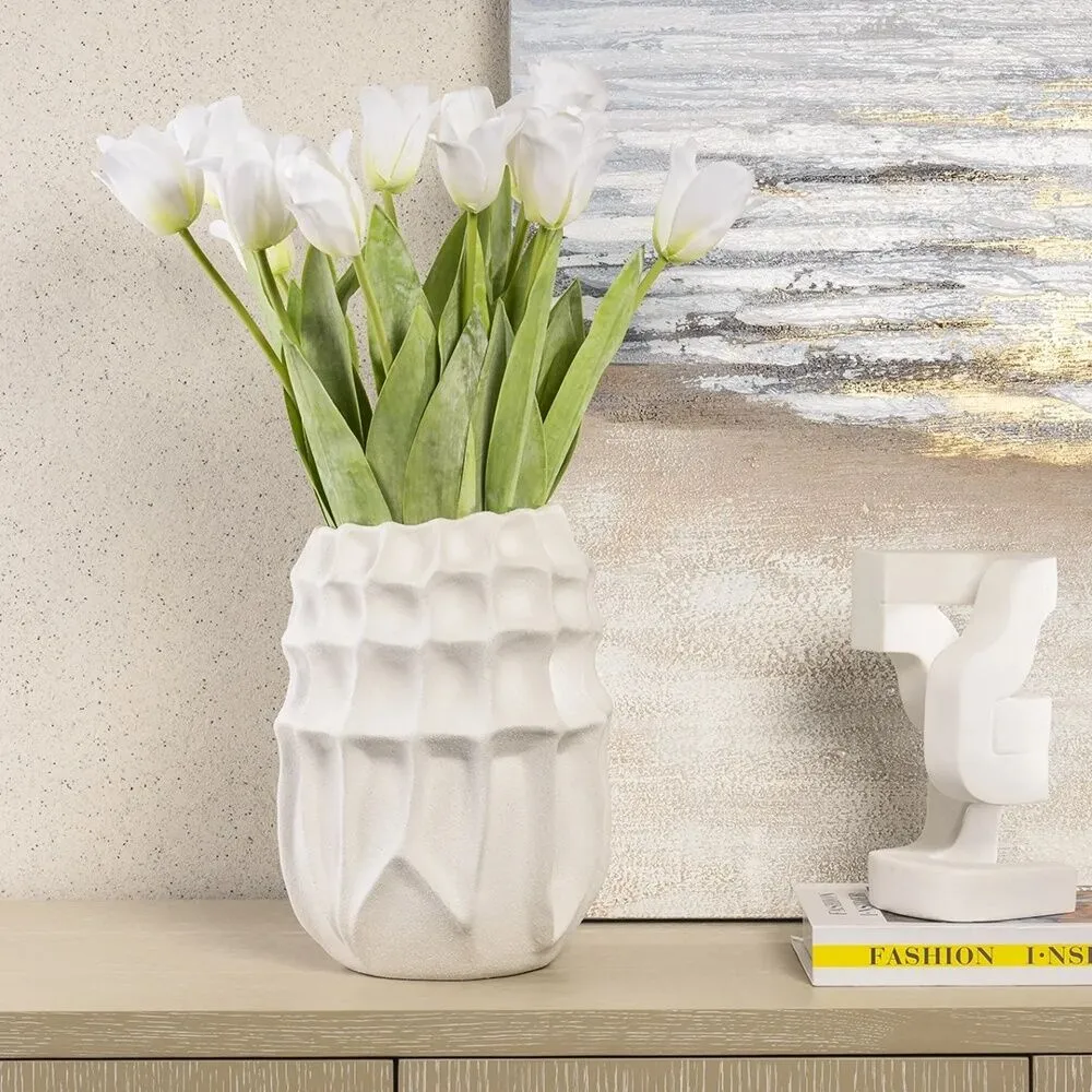 فازة ديكور تُستخدم لإضفاء لمسة أنيقة وعصرية على المساحة، كما تساهم في إبراز جمال الزهور وتنظيمها بشكل جذاب.