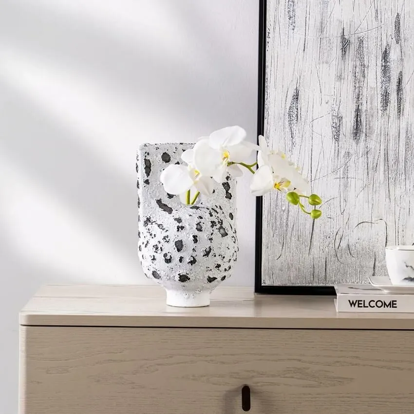 تضفي هذه الفازة الرائعة رقيًا إلى منزلك. صُنعت من السيراميك الأنيق . تصميمها الفريد يجعلها قطعة ديكور آسرة بحد ذاتها أو وعاءًا مثاليًا لعرض نباتاتك المفضلة، لتغمر مساحة معيشتك بالدفء والأناقة الراقية.