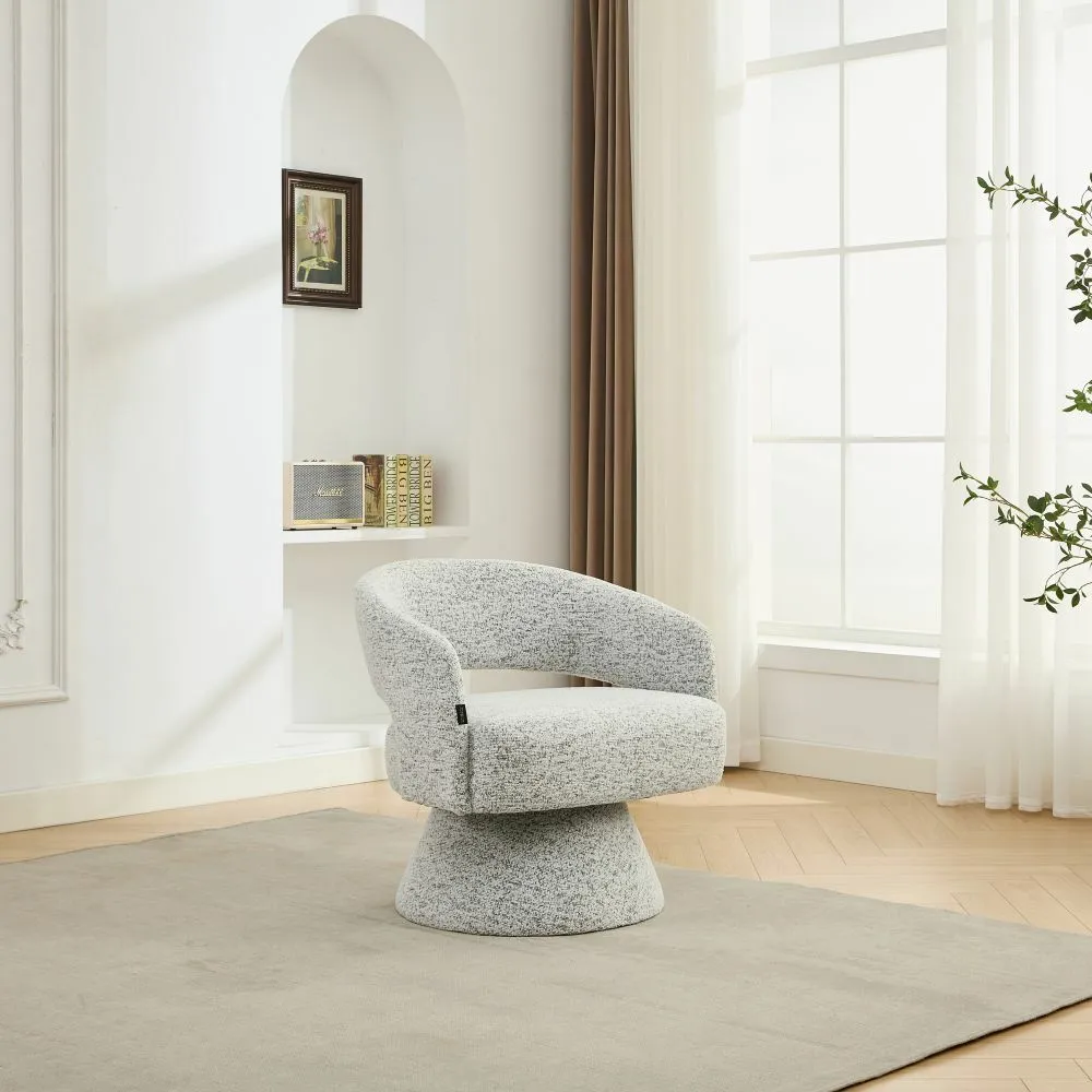 باللون الرماي الذي يوحي بالهدوء، التوازن، والأناقة العصرية، ويُعد من الألوان المحايدة الراقية التي تضيف لمسة ناعمة ومتزنة لأي مساحة.حيث يتميز بتصميم عصري وانسيابي، يجمع بين الراحة والأناقة، مع قاعدة دوّارة ومسند مدمج للذراعين يوفّر تجربة جلوس مريحة ومظهر جذاب يليق بمختلف المساحات الداخلية. مصنوع من الستيل وخشب الرقائقي.