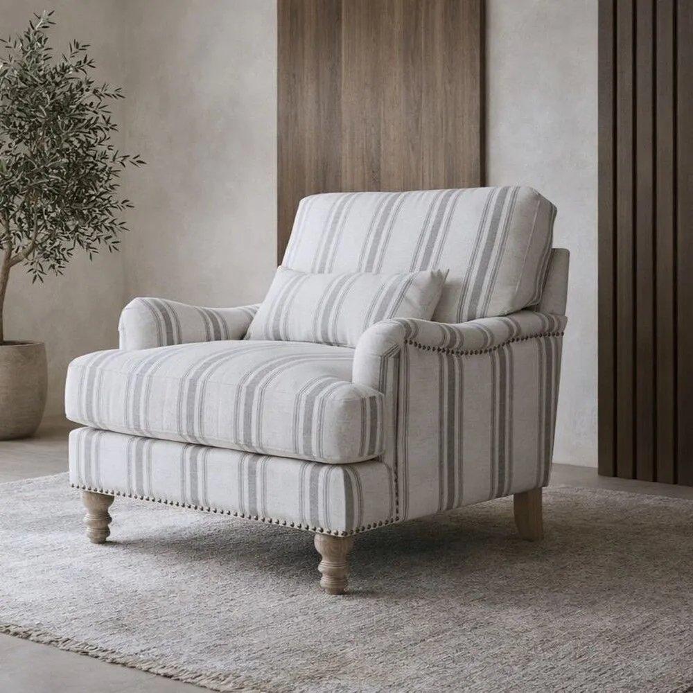 أضف لمسة من الأناقة الهادئة والراحة الفاخرة إلى مساحة جلوسك مع هذه الكنبة ذات التصميم الكلاسيكي الدافئ. تأتي بألوان الأبيض والرمادي المتناسقة بنقشة ناعمة تمنح إحساسًا بالهدوء والرقي، بينما يجمع تنجيدها بين البوليستر والكتان لملمس مريح ومظهر أنيق. تصميمها المدروس يجعلها خيارًا مثاليًا لغرف المعيشة الراقية وزوايا الاسترخاء.