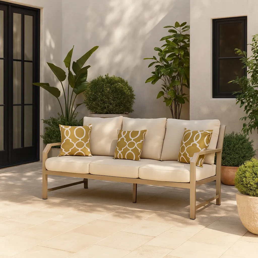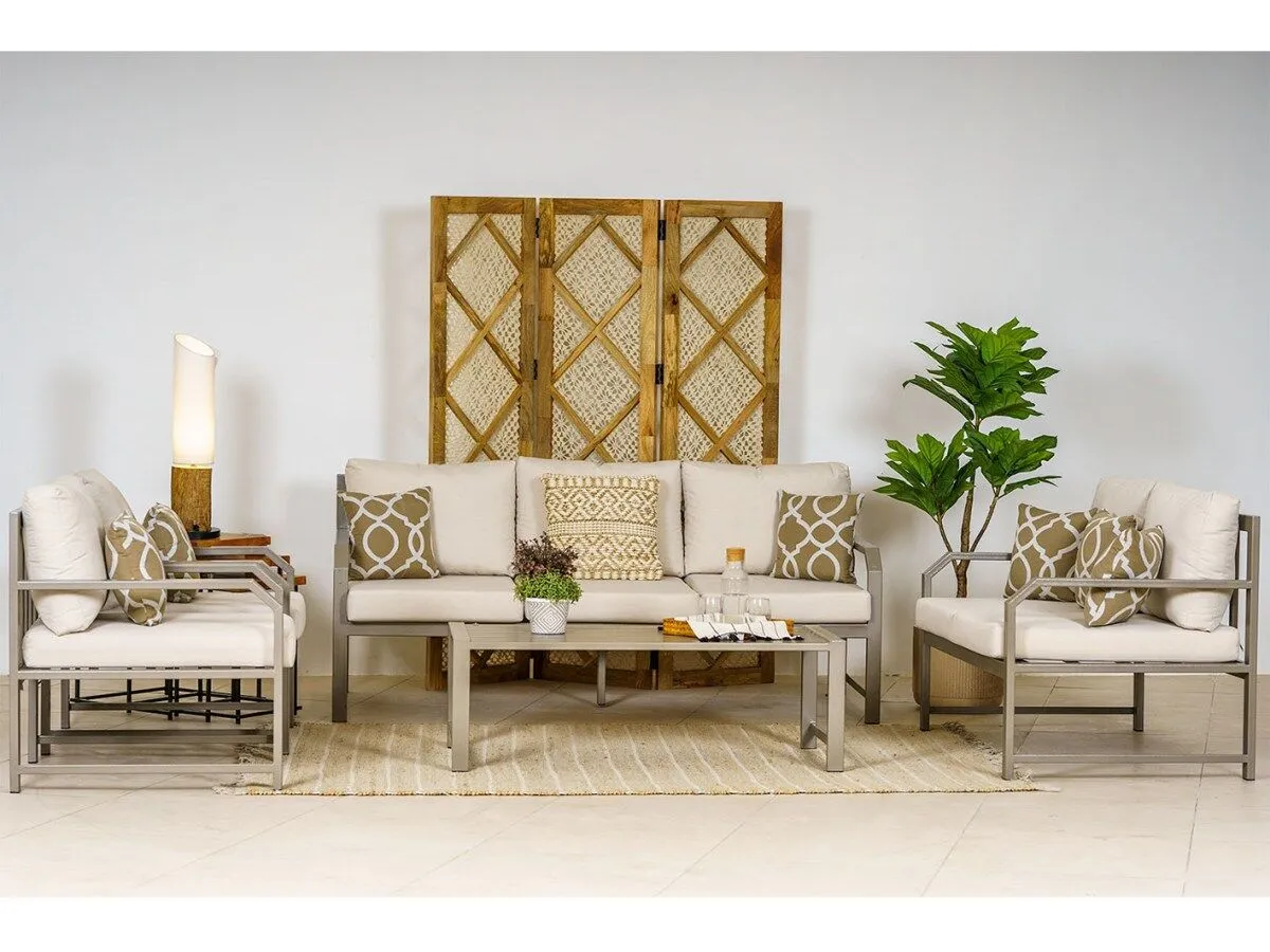 كنب جلسة خارجيه ثلاثي نيس - بيجعزز من أناقة قطع الأثاث في حديقة منزلك باعتماد كنب نيس الذي يتميز بطابع عصري فاخر- ومصنوع من خامات عالية الجودة لضمان المتانة والاستدامة.القماش : مقاوم للماء وقابل للغسيل
