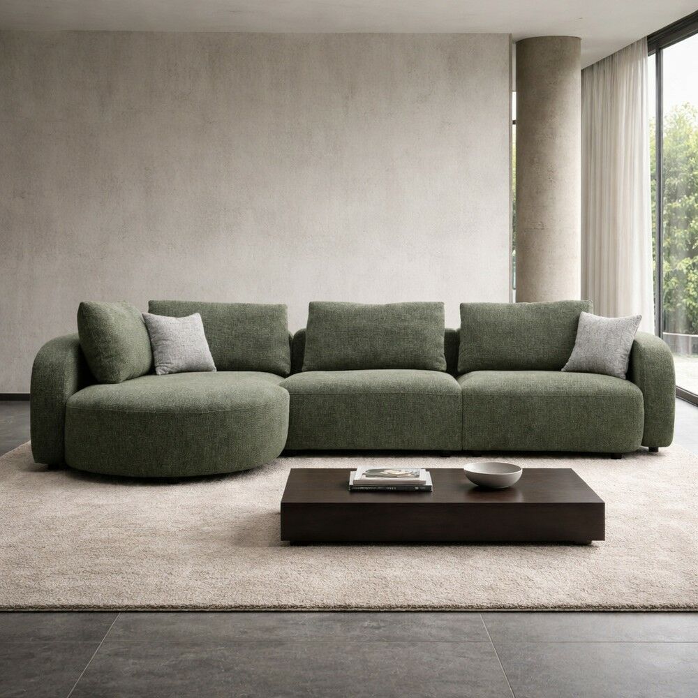 أخضر أنيق وهادئ، سهل التنسيق مع الألوان المحايدة والخشبية، ويضفي إحساسًا بالانتعاش والحيوية على غرفة المعيشة.التصميم:
