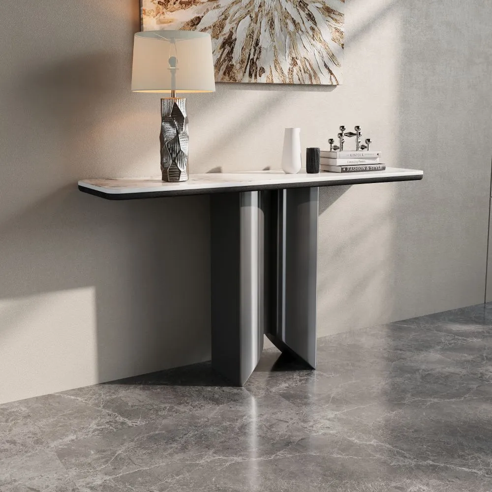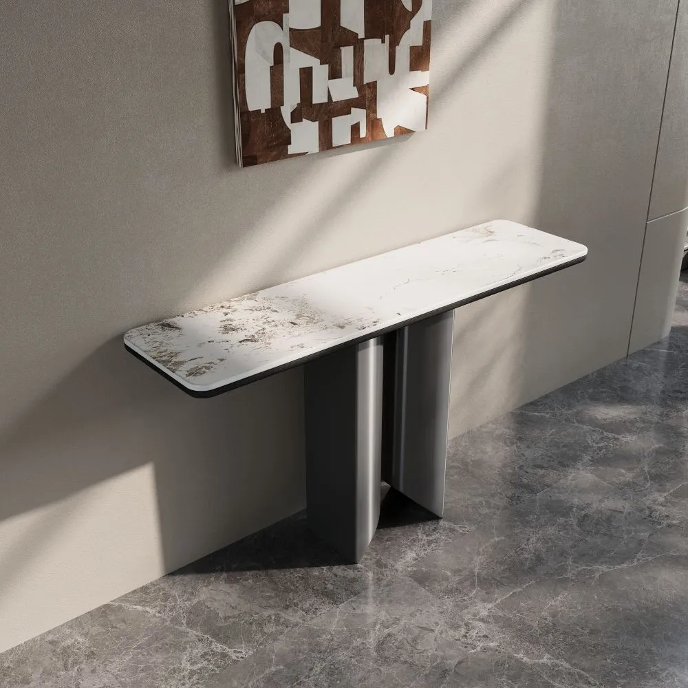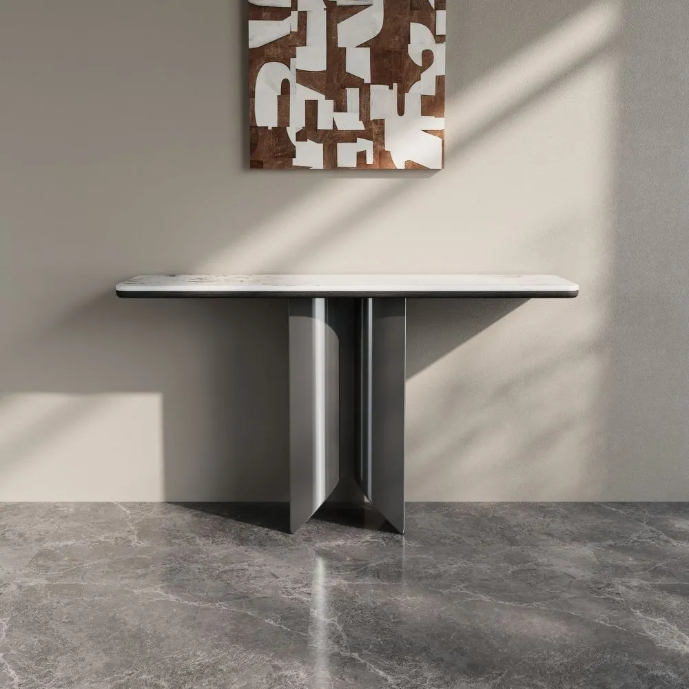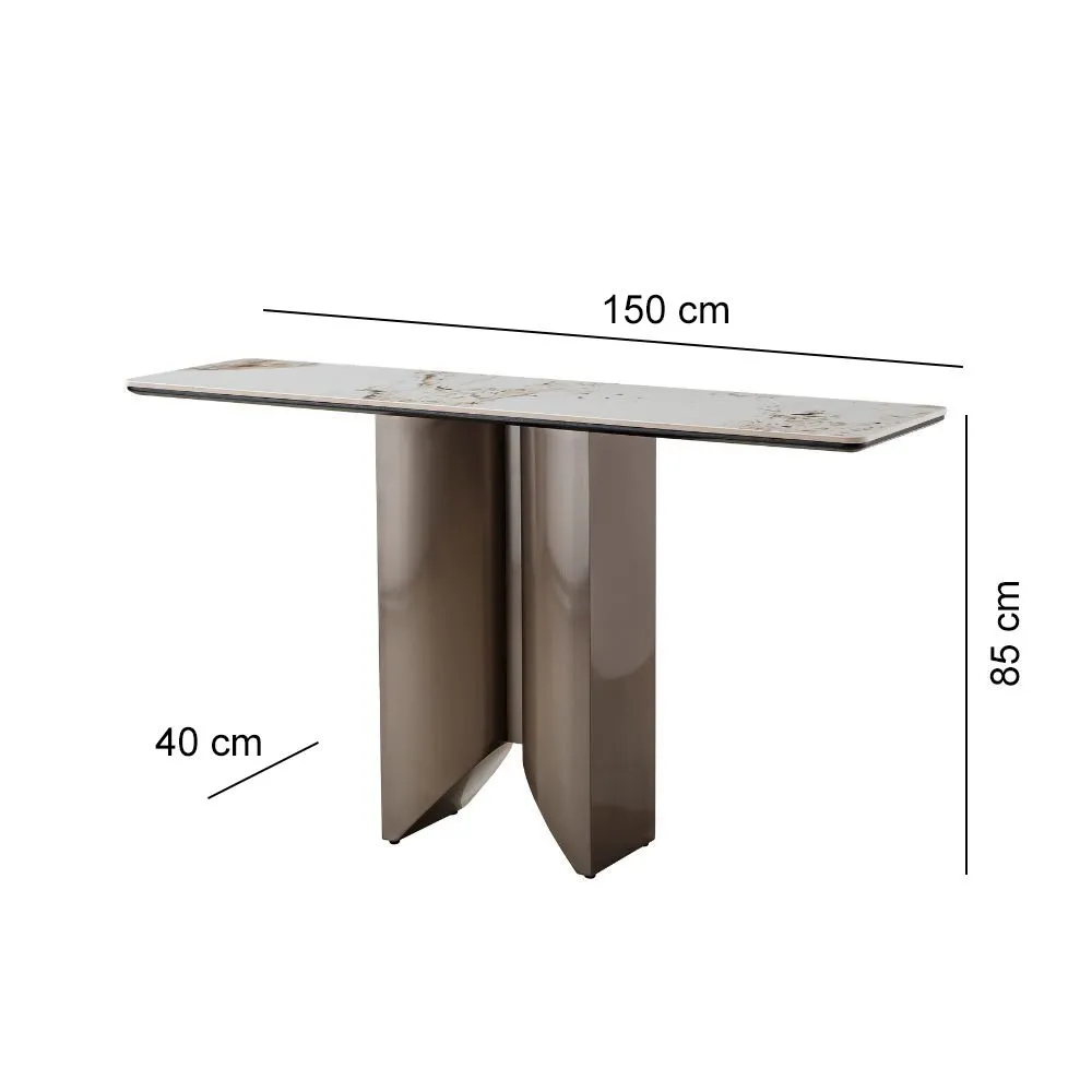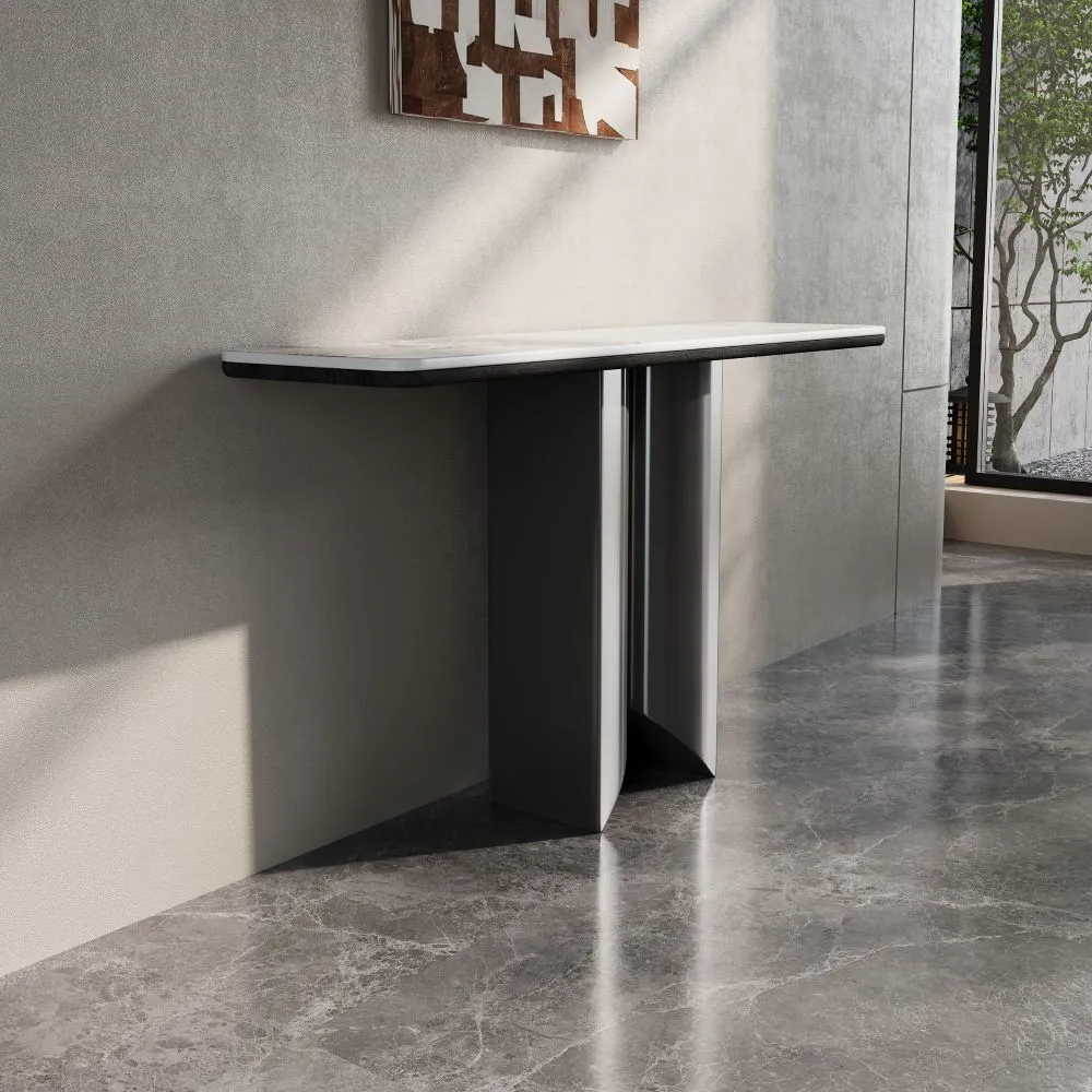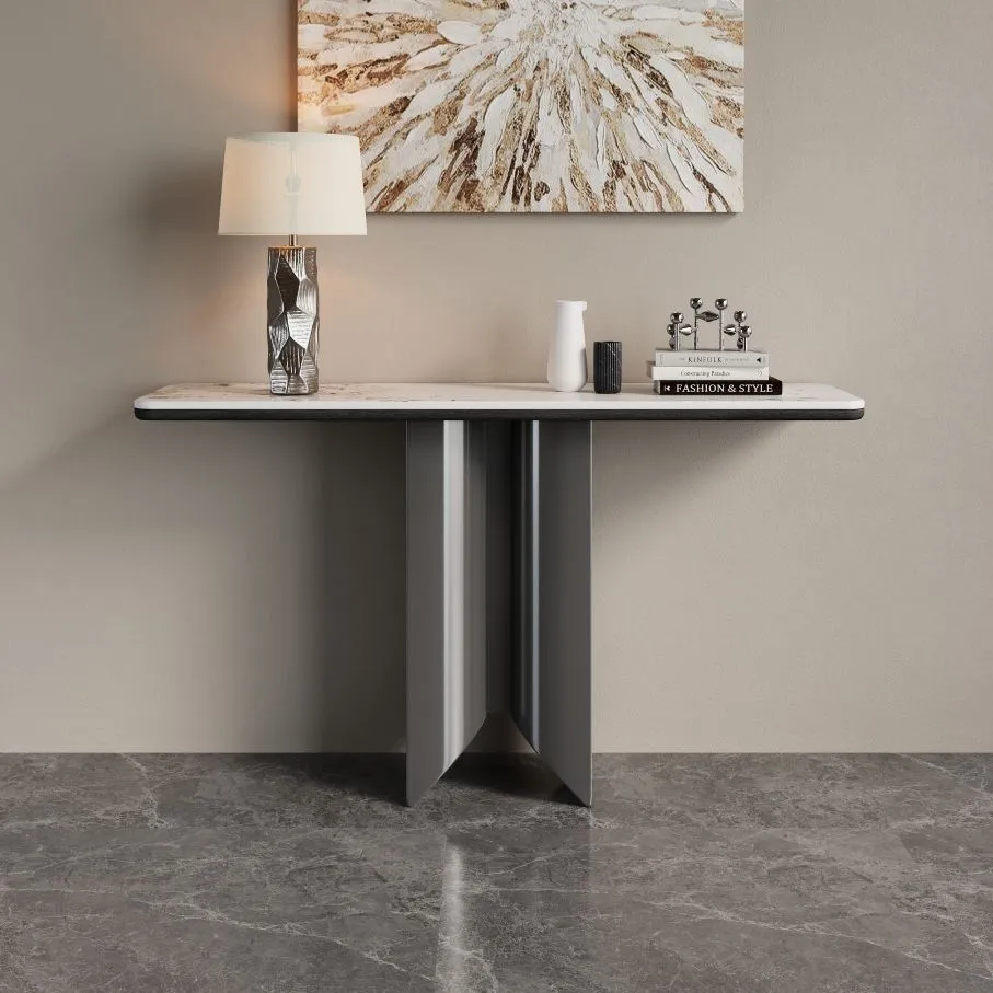 كونسول ريكو - رمادي وابيض يتميز بتصميم عصري وأنيق، حيث يجمع بين التفاصيل الفاخرة والبساطة في التصميم. سطحه العلوي يضيف لمسة من الفخامة والرقي للمكان. القاعدة تأتي بتصميم مبتكر، مع هيكل معدني بلون معدني لامع يتماشى بشكل رائع مع الطاولة العلوية. يُعد هذا الكونسول خيارًا مثاليًا للمساحات التي تحتاج إلى لمسة مميزة وعصرية، سواء في المداخل أو غرف المعيشة.