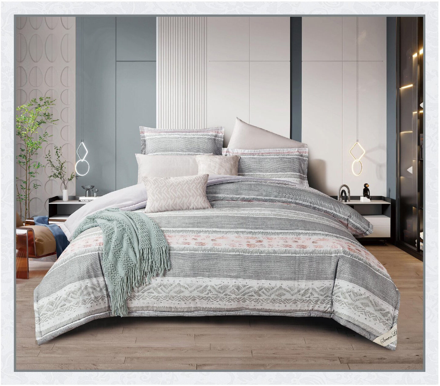 طقم لحاف كينغ استريم لايف يعطي أناقة للأسرة والراحة والدفء خلال النوم تعتبر أساسية في كل منزل لذلك نوفر لك أجمل طقوم اللحاف بتصاميم ونقشات متنوعة وجذابة وخامات عالية الجودة. تصميم مميز وخامات عالية الجودة يشكل إضافة رائعة لأطقم اللحافات الخاصة بك.