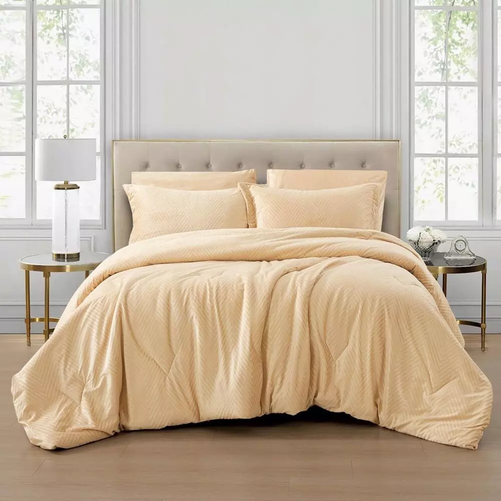 لحاف مزدوج شتوي مخمل تولا - 6 قطع - بيج