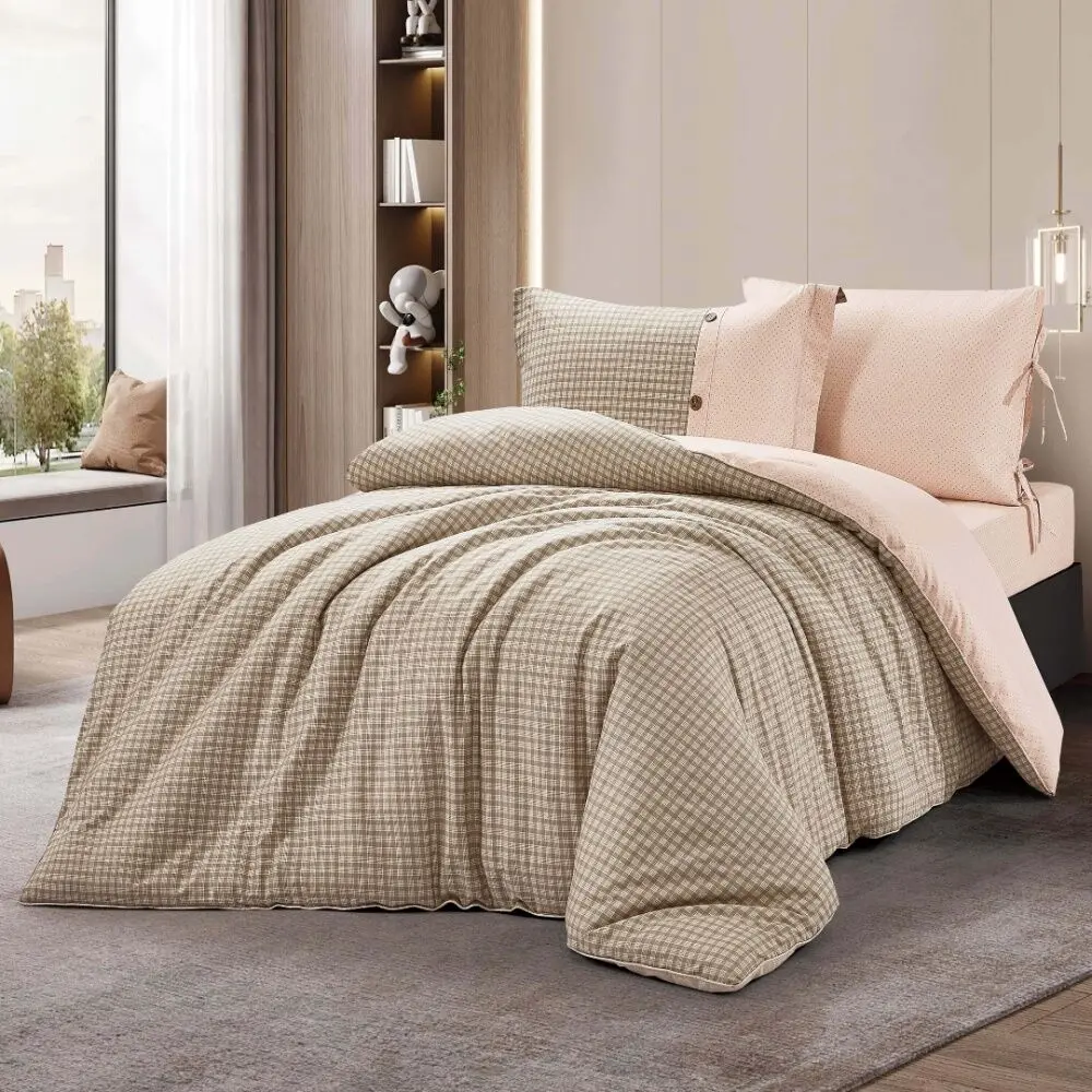 لحاف إشراقة باللون البيج يجمع بين النعومة والراحة والتصميم الأنيق ليضفي لمسة جمالية في غرفة نومك، ويمنحك ولعائلتك تجربة نوم مريحة ومميزة بكل ليلة.