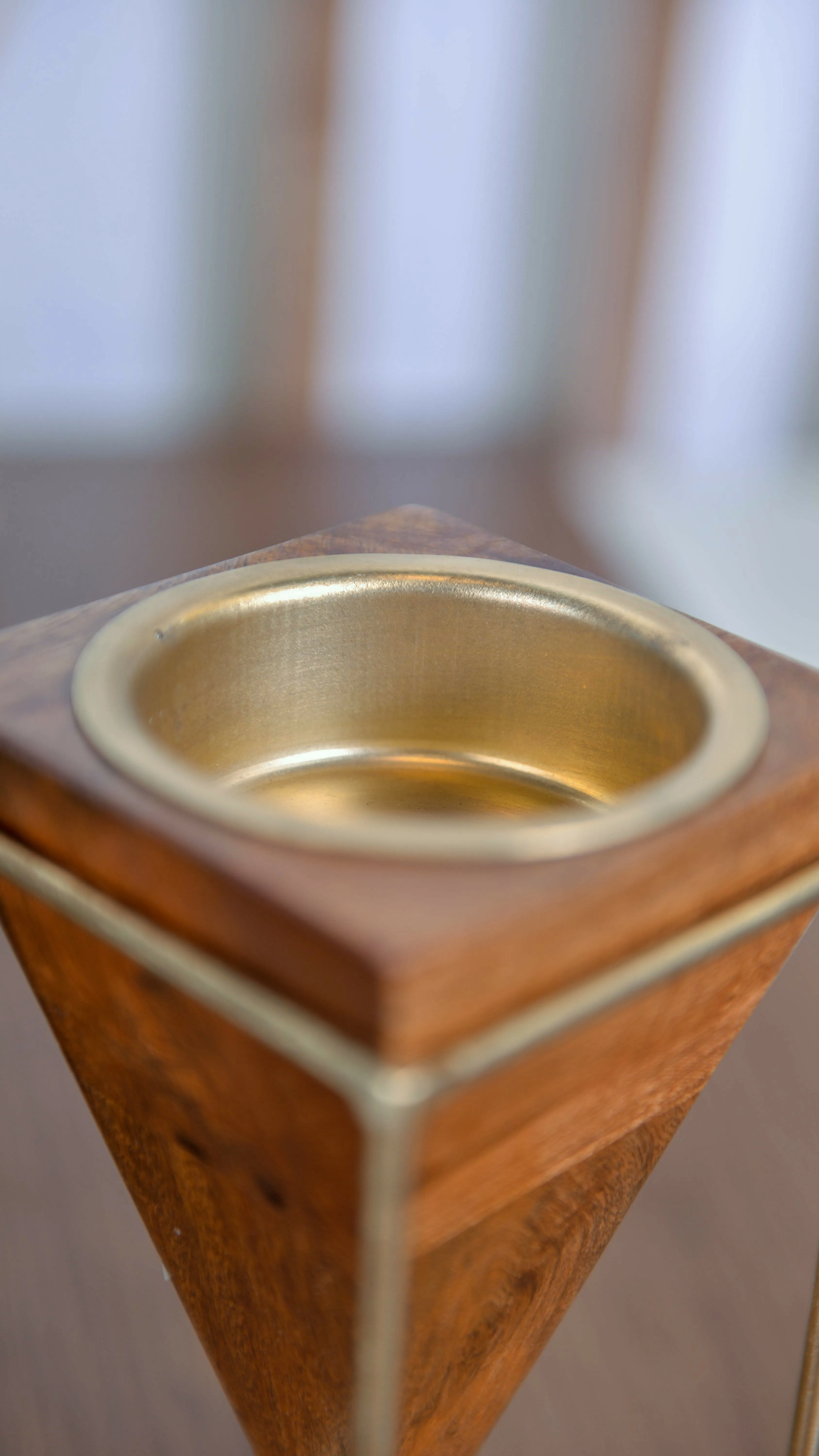 مبخرة بيراميد عصرية أنيقة بتصميم هندسي فاخر تشكل إضافة مميزة لديكور المنزل وتنشر رائحة البخور الزكية بعناية. المبخرة مصنوعة من الخشب المصقول عالي الجودة بشكل هرمي مميز ومكان وضع البخور مصنوع من الستيل المقاوم لحماية الخشب من الاحتراق وتسهيل تنظيف المبخرة. للمبخرة حامل مصنوع من الستيل المطلي بلون ثابت يضمن ثبات المبخرة على السطوح بشكل تام.