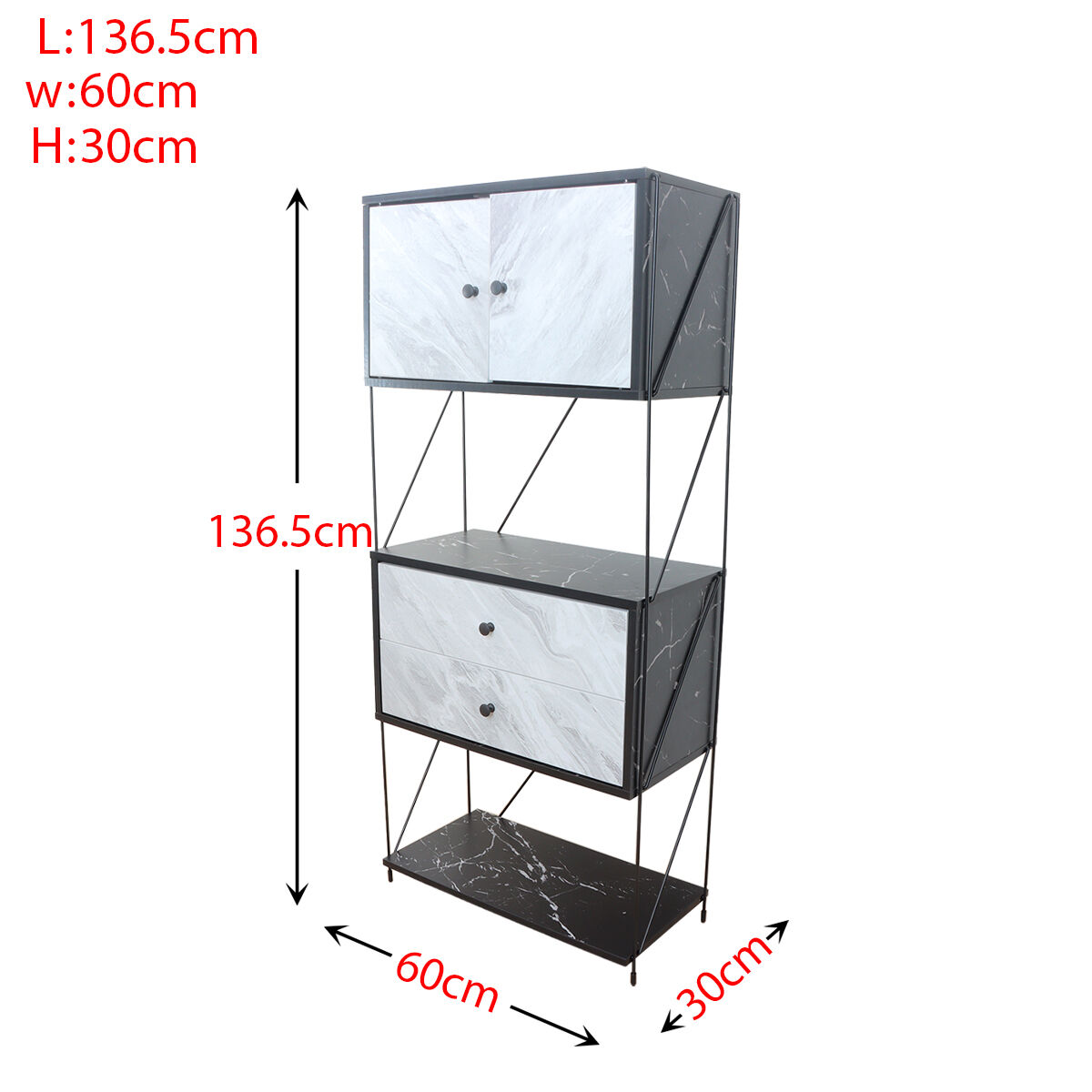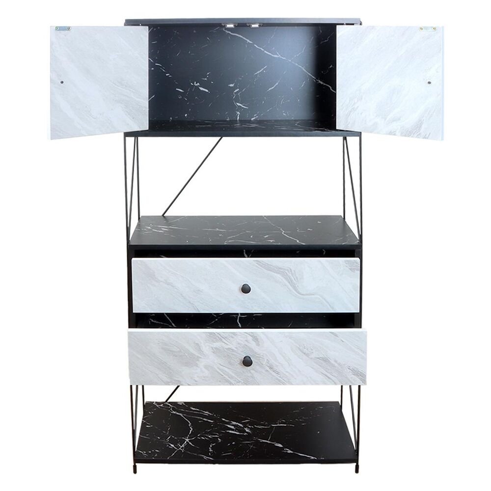 أنت تراجع:وحدة تخزين أدراج مع رفين - أبيض وأسود