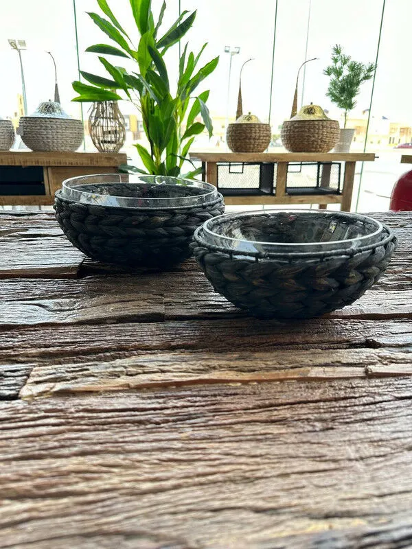 أضف لمسة مميزة لمائدتك مع وعاء تقديم من مجموعة غراس الحصرية حيث صنع من عشب البحر بالاضافة الى وعاء زجاجي داخلي لتقديم السلطة او الفواكه و يعطي إضافة لاتنسى لمائدتك. صنع يدويا من أمهر الأيادي الحرفية.