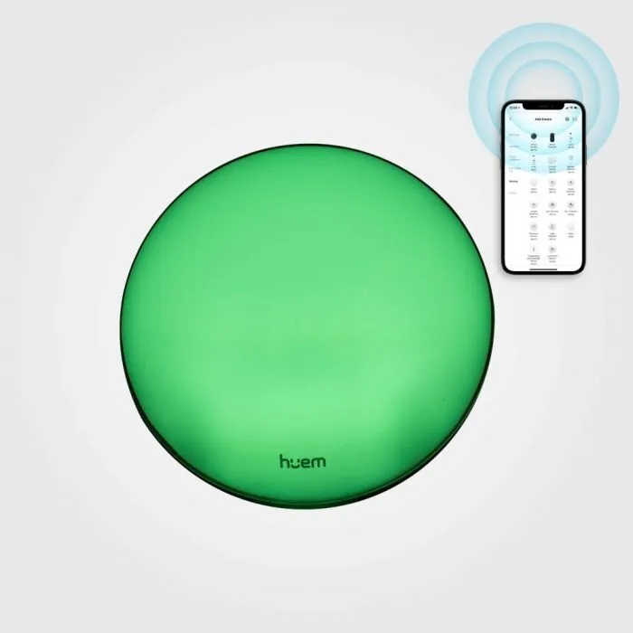 يمكن توصيل الجهاز بتطبيق "Huem" المتاح على متجر Apple ومتجر Google Play.