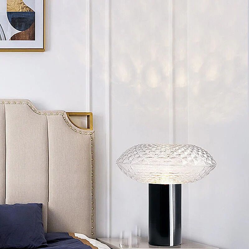 أضف لمسة من الأناقة المعاصرة إلى ديكور منزلك مع ابجورة الطاولة المودرن. تتميز بتصميم عصري وأنيق بقاعدة أسطوانية باللون الأسود، مع غطاء زجاجي شفاف بتفاصيل نقش مميز يضفي تألقاً ناعماً على الإضاءة. مصممة لتناسب غرف النوم، طاولات المعيشة، المكاتب أو صالات الاستقبال، مما يجعلها قطعة ديكور وإضاءة عملية في نفس الوقت.