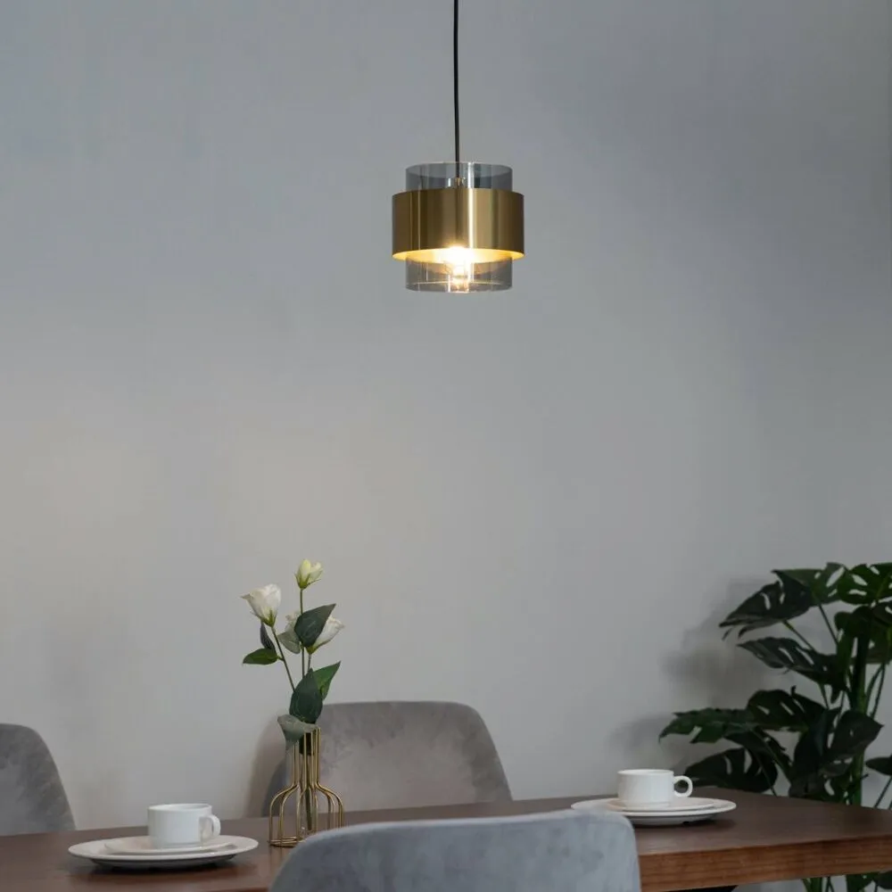إنارة معلقة مودرن بتصميم أنيق ولون نحاسي مميز، تتميز بغطاء أسطواني شفاف يضفي لمسة جمالية وعصرية على أي مساحة. تأتي هذه الإنارة بقاعدة لمبة من نوع E27 (لا تتضمن اللمبة)، مما يمنح مرونة في اختيار نوع الإضاءة المناسبة. بفضل تصميمها البسيط والأنيق، يمكن استخدامها في المطابخ، أو بجانب الأسرّة، أو في المداخل والممرات الداخلية، مما يضفي أجواء دافئة وجذابة. أبعاد الإنارة هي 16 سم في الارتفاع وقطر 18 سم، ويصل طول السلك إلى 100 سم، مما يتيح تعديلها حسب ارتفاع السقف المناسب.