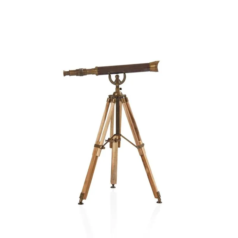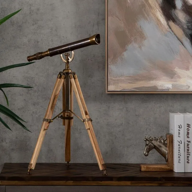 بمزيج من العناصر الزخرفية المصنوعة من مواد خشبية مزينة بألوان نحاسية، توفر قطعة التلسكوب الفنية المميزة هذه إضافة انتقائية وخالدة إلى رف الكتب أو مكتبك