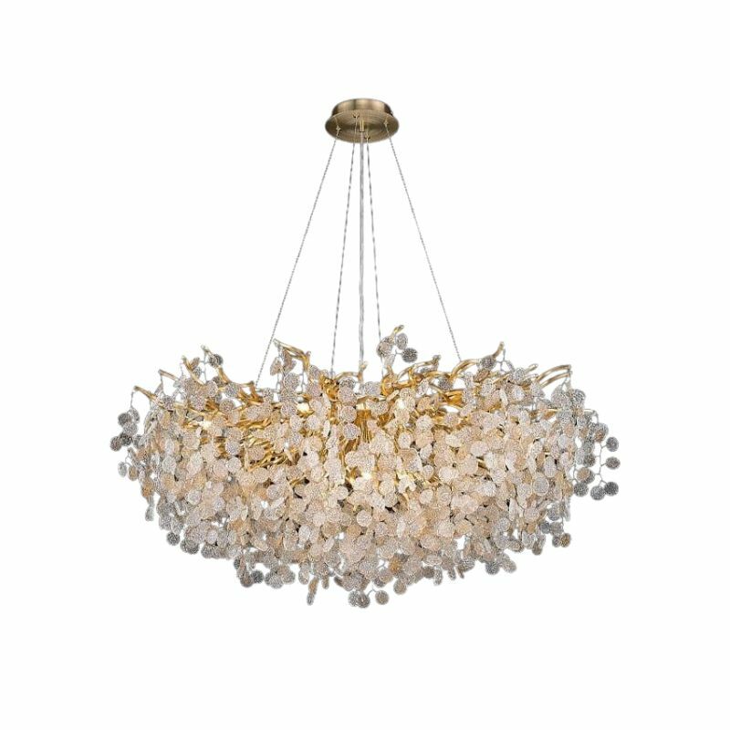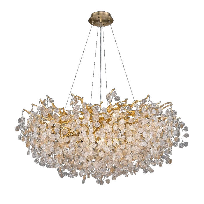 ثريا علاقي دائري غيمة زجاج مشغول يدوي - ذهبي