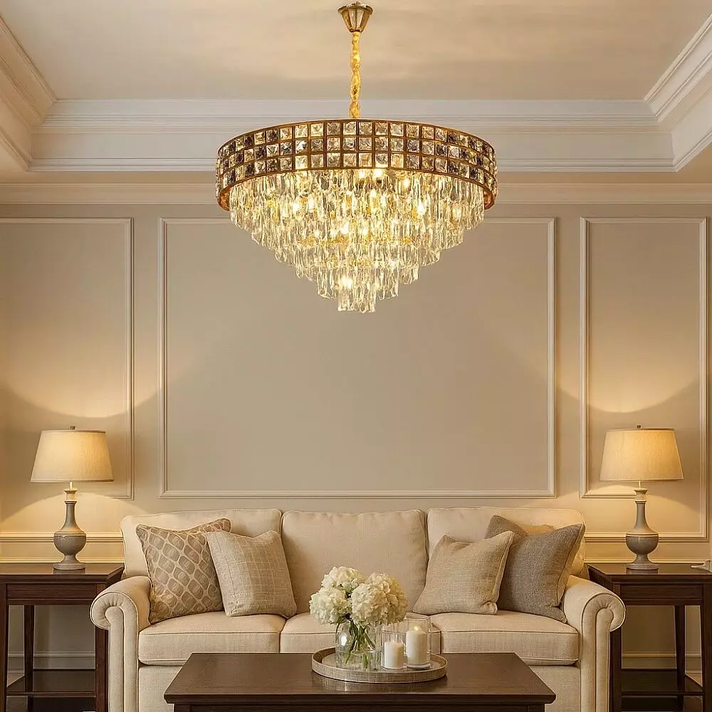 استمتع بلمسة فنية تضيف إلى منزلك رونقًا خاصًا، مع تصميم عصري بكريستال عالي الجودة، يدمج الكلاسيكية بالحداثة، ويمنح كل مساحة هوية ضوئية لا تُقاوم.