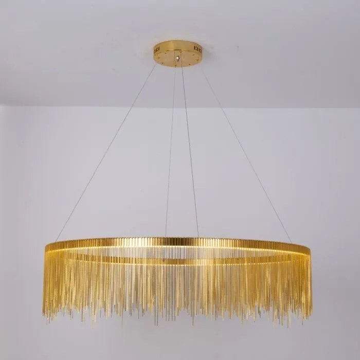 ثريا مودرن ذهبي بمقاس 1متر بتصميم رائع ومميز وتاتي الثريا اضاءة بثلاث ألوان جذابة وهي الابيض، الاصفر والكريمي وجميعها تمتاز بالهدوء والجاذبية التي نعكس على جو المكان مدى تزول الثريا واحد متر ويمكن تقصير الواير لاقل من ذلك اشتر الان الثريا واضف الى سقف منزلك هذه التحفة الفنية الرائعة في عالم الاضاءة .