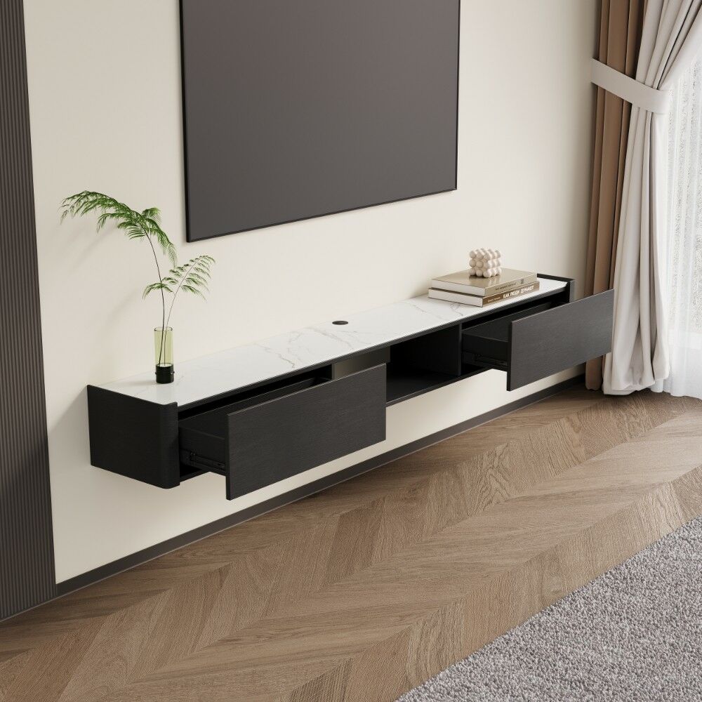 مزيج أنيق من اللونين الأسود والأبيض يمنح حامل التلفزيون مظهرًا عصريًا جذابًا يتناسب بسهولة مع مختلف ألوان الأثاث والديكور.