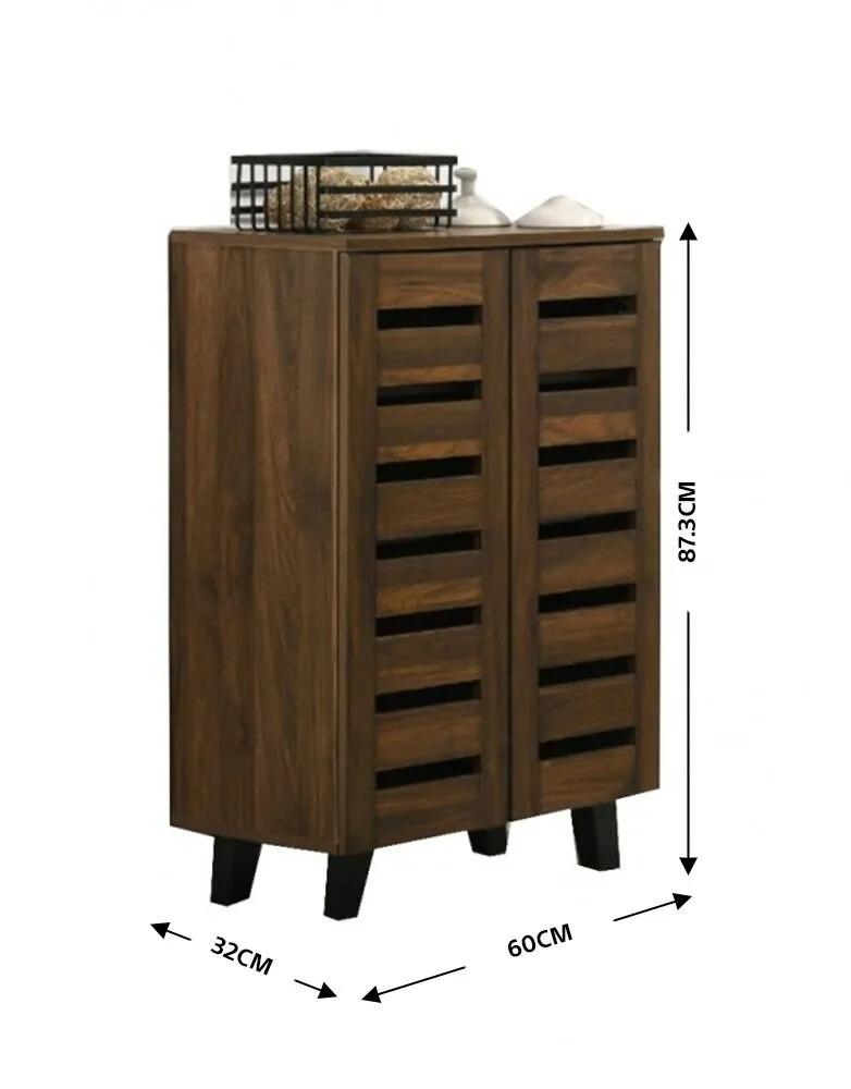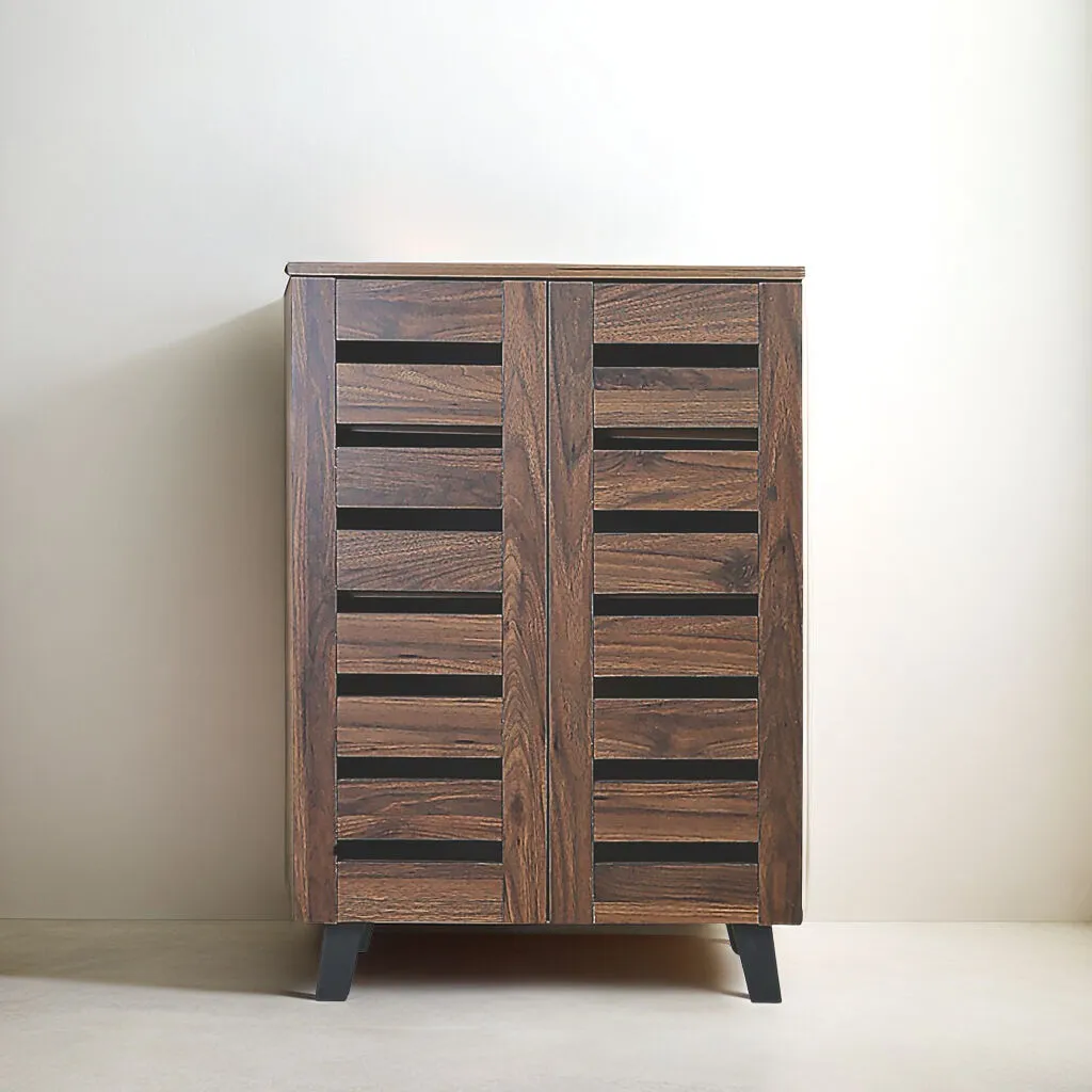 خزانة أحذية مورا - بني، منظم أحذية خشب ماليزي مستوحاة من النجارة الحديثة التي تجمع بين الأسلوب والوظيفة لأنماط المعيشة الحالية في المدن. ستحصل أحذيتك على التهوية والمساحة التي تحتاجها لتحتفظ بحيويتها وتبقى كأنها جديدة لفترة أطول. يمكنك أيضاً الاستفادة من سطح الخزانة لوضع الأشياء التي تحتاجها في الحياة اليومية أو عند الخروج من المنزل كالحقائب والمجلات والأشياء التي تحمل طابع شخصي كالديكورات والتحف والنبتات والانارات. وهي مناسبة للاستخدام لأغراض أخرى كتوضيب المقتنيات كالكتب والمجلات ,الأكواب وأي شيء تحتاجه في متناول اليد.