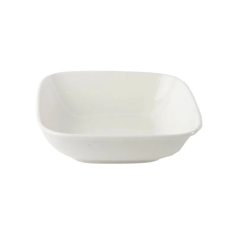 زبدية مربعية الشكل مصنوعة من البورسلان باللون الأبيض ذو عمق مناسب لإحتواء مختلف الأصناف, وهو إختيار مثالي لتقديم وتنسيق الأطعمة بشكل جميل ومنظم.