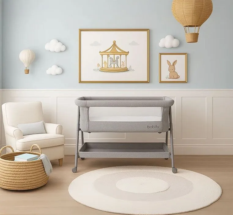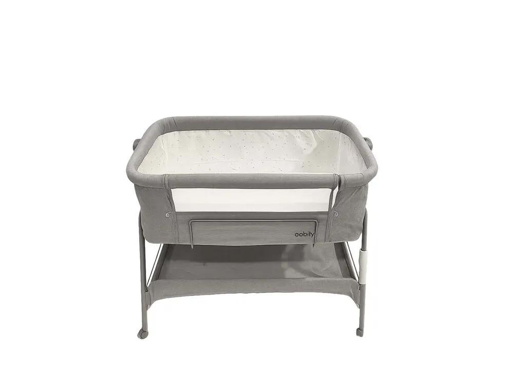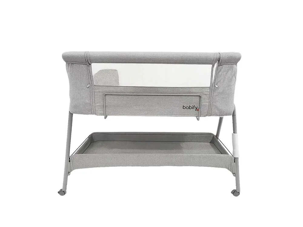 سرير اطفال حديثي الولادة بعجلات مع رف تخزين – لون رمادي أنيق