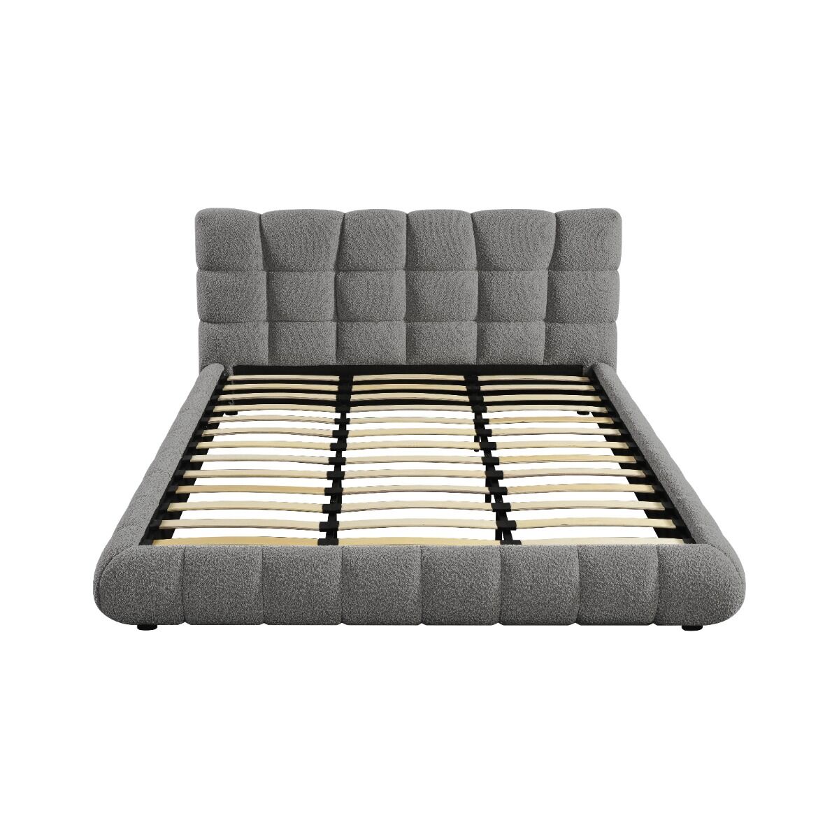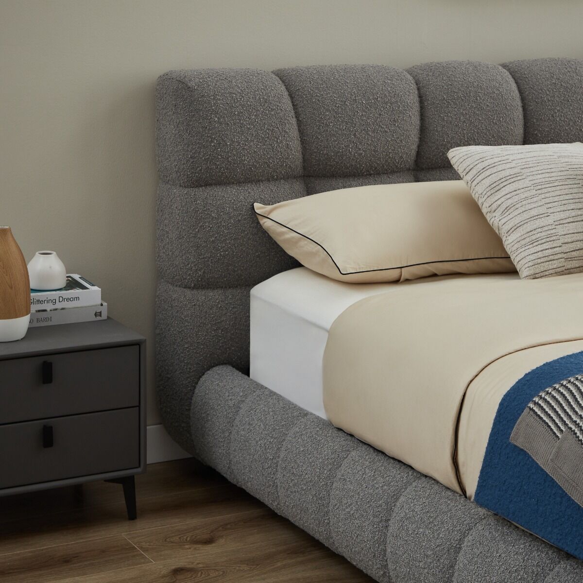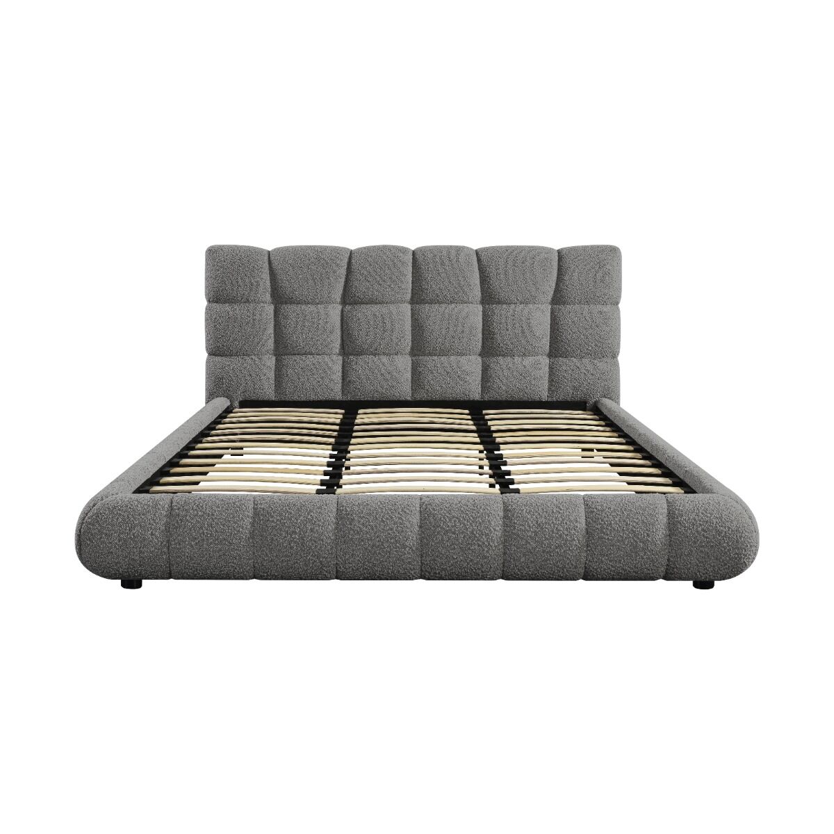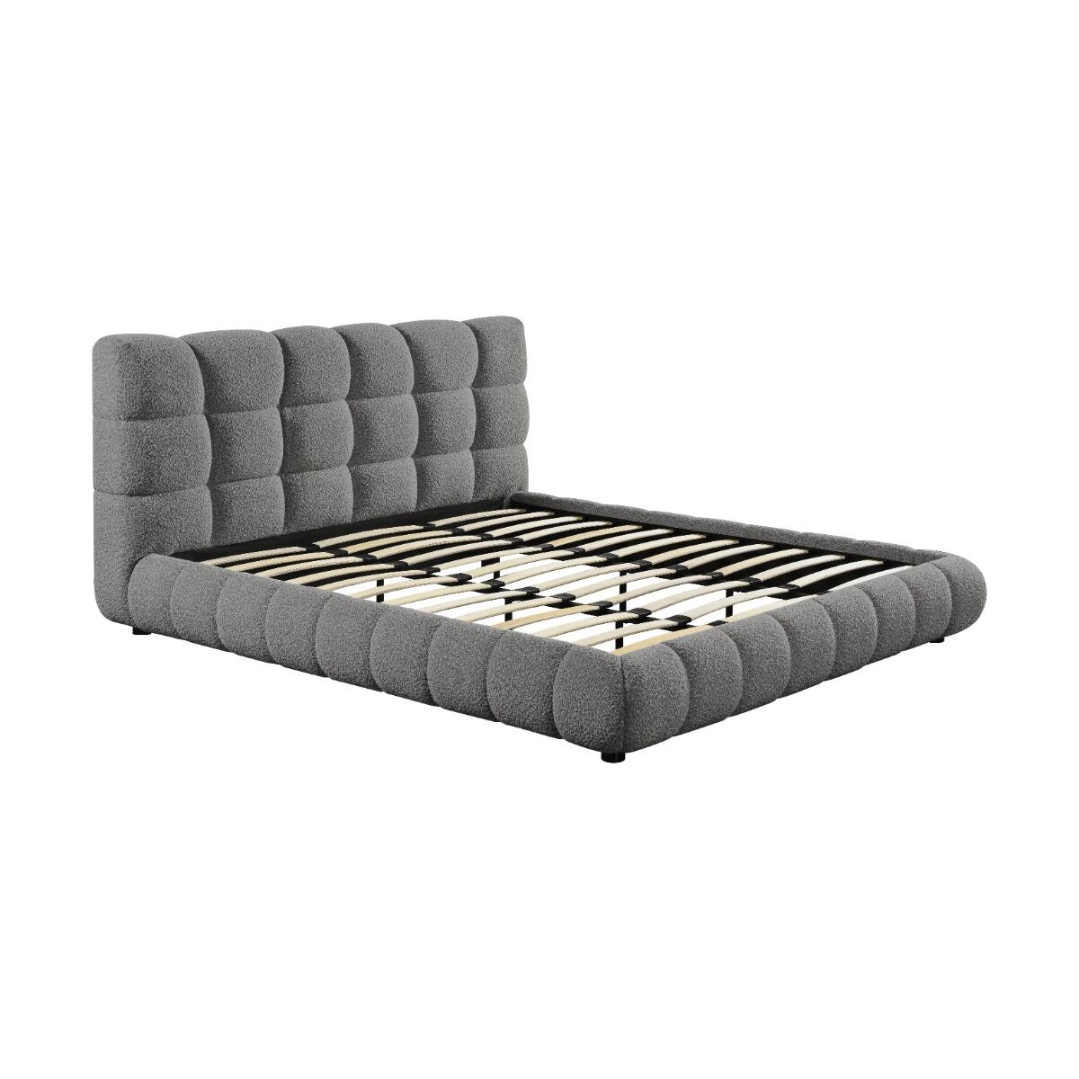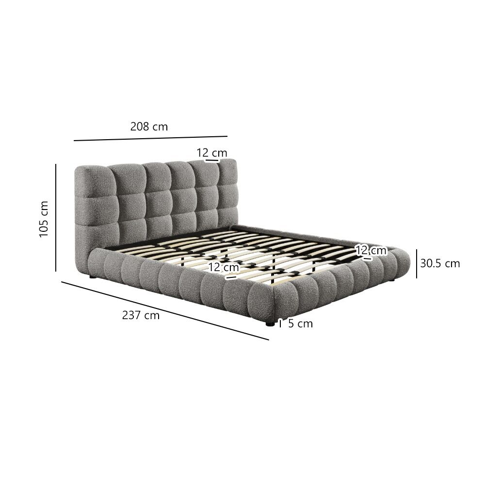 سرير كينغ رمادي فاخر بتنجيد بوكليه – تصميم عصري وراحة استثنائية