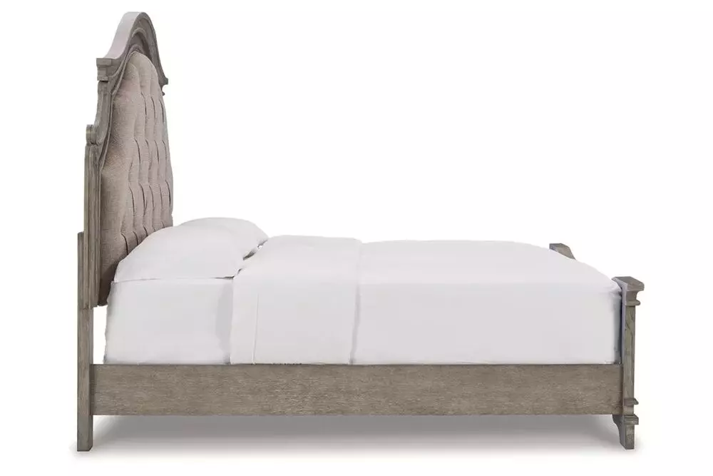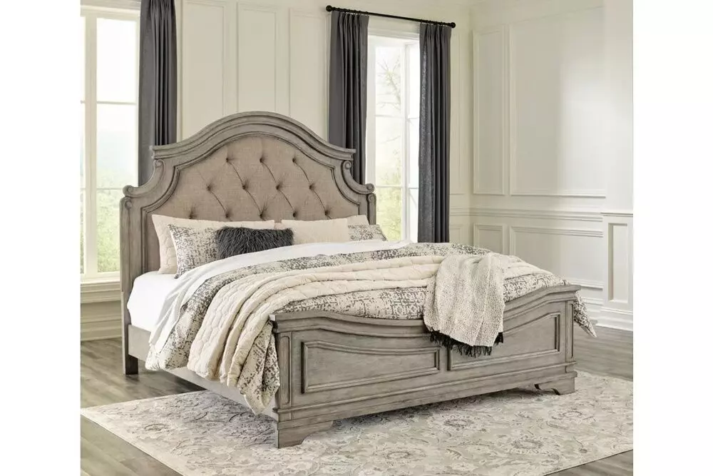 سرير لودنباي بحجم كينغ هو الحل المثالي لمن يبحث عن الراحة والأناقة في غرفة نومه. مع تصميمه الكلاسيكي وسحره المنزلي، يجمع هذا السرير بين الفخامة والراحة، حيث يتميز برأس سرير مزخرف بشكل رائع وتنجيد بلون البيج، مما يضفي لمسة دافئة على أي مساحة.