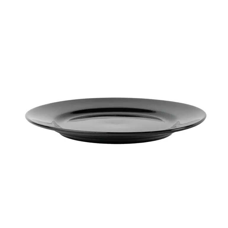 طبق دائري الشكل مصنوع من البورسلان باللون الأسود مناسب لإحتواء مختلف الأصناف, وهو إختيار مثالي لتقديم وتنسيق الأطعمة بشكل جميل ومنظم.