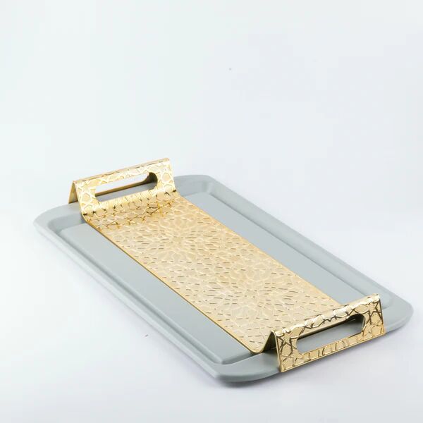 صينية تقديم حديدية من اصالة - رمادي وذهبي