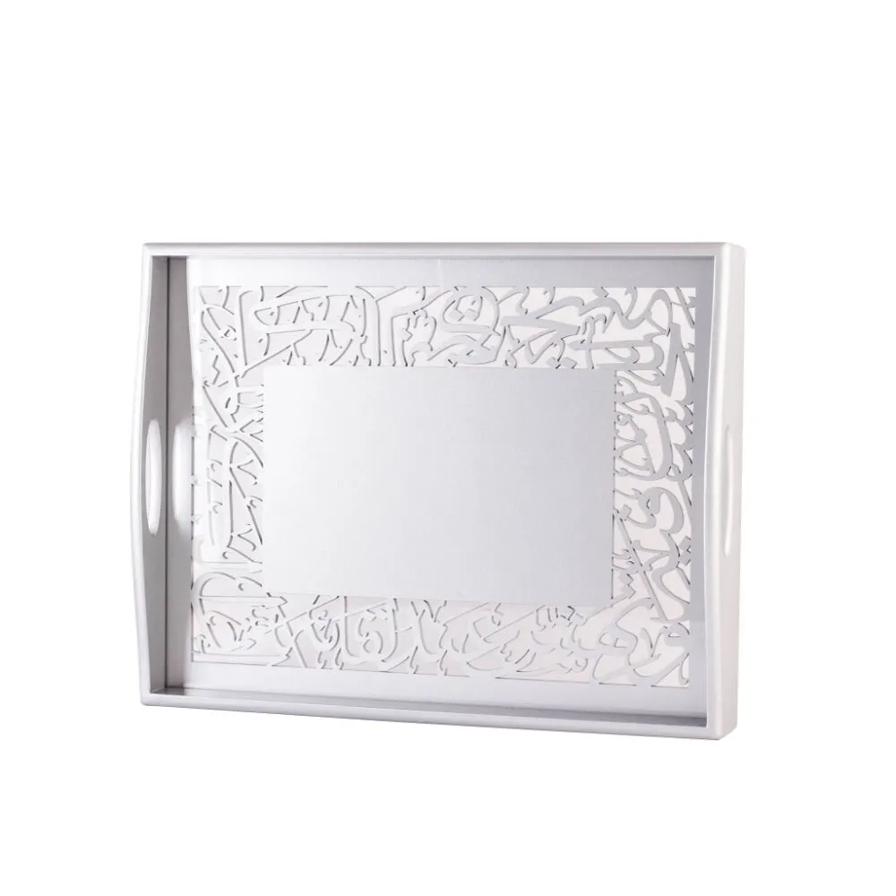 صينية تقديم حفر خشب - فضي